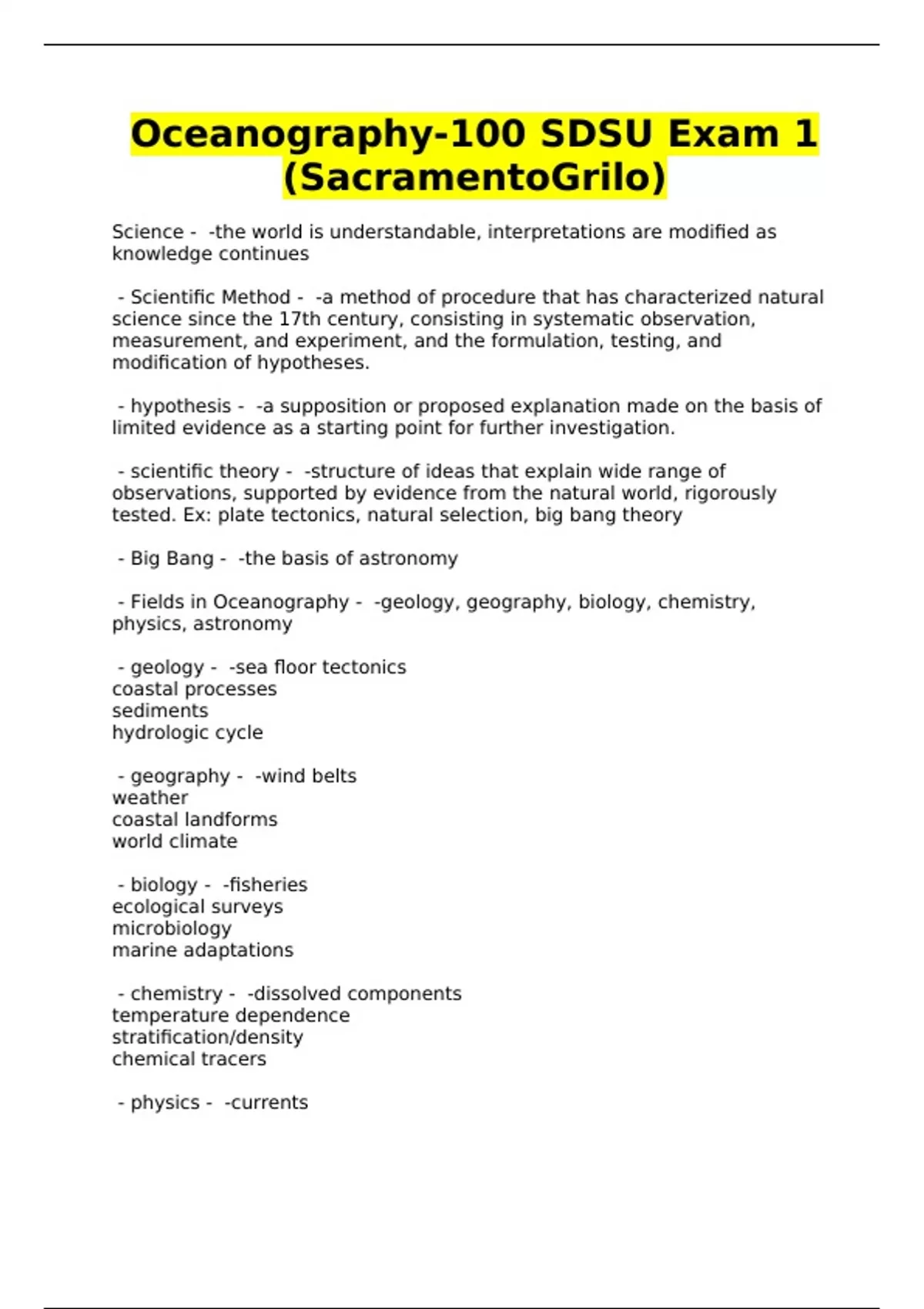 Oceanography-100 SDSU Exam 1 (SacramentoGrilo)