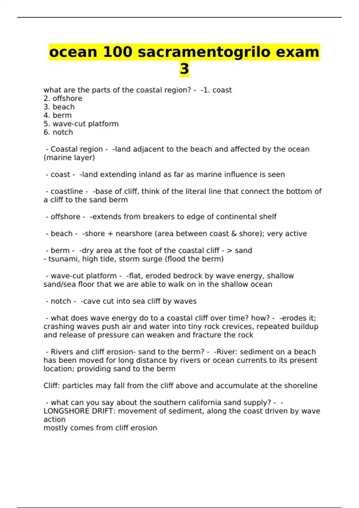 - what are the principal sources of sand to the beach? - -1. erosion of cliffs