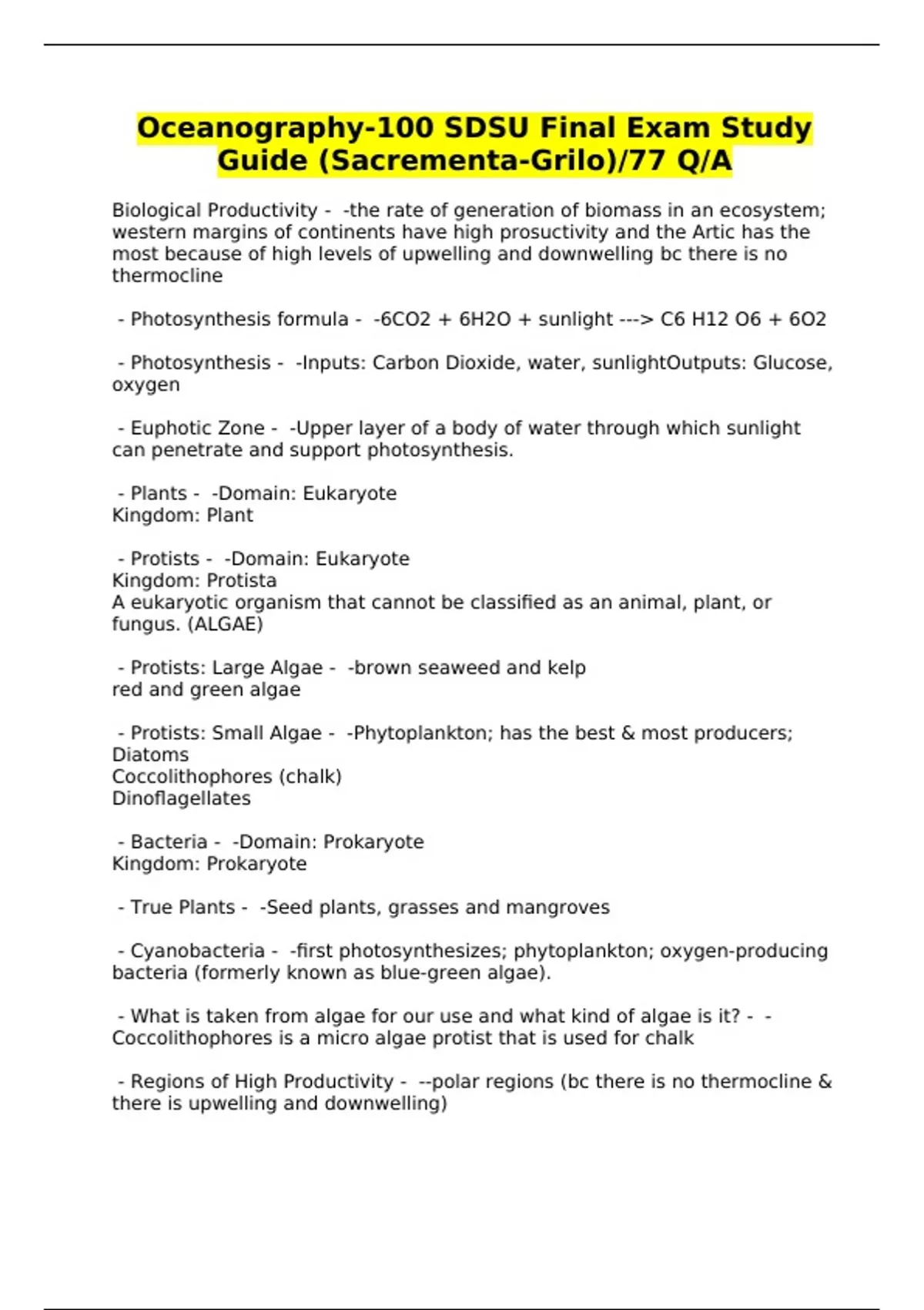 Oceanography-100 SDSU Final Exam Study Guide (Sacrementa-Grilo)/77 Q/A