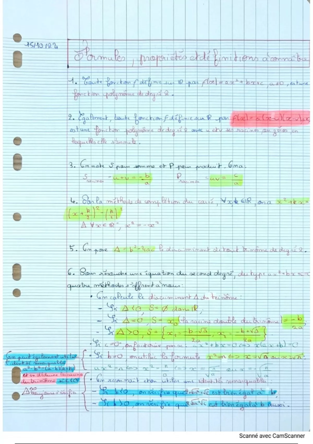 Résumé Première générale - Fiches de révisions - Mathématiques - Second degré