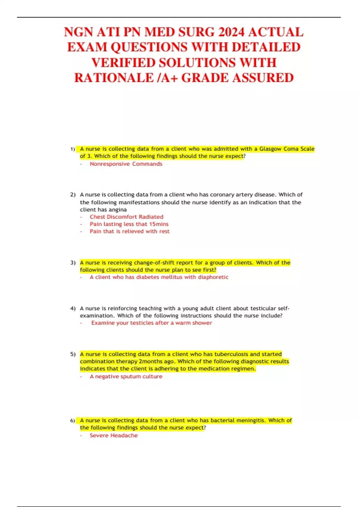 Exam of 20 pages for the course HESI MED SURG at HESI MED SURG (med_surg)