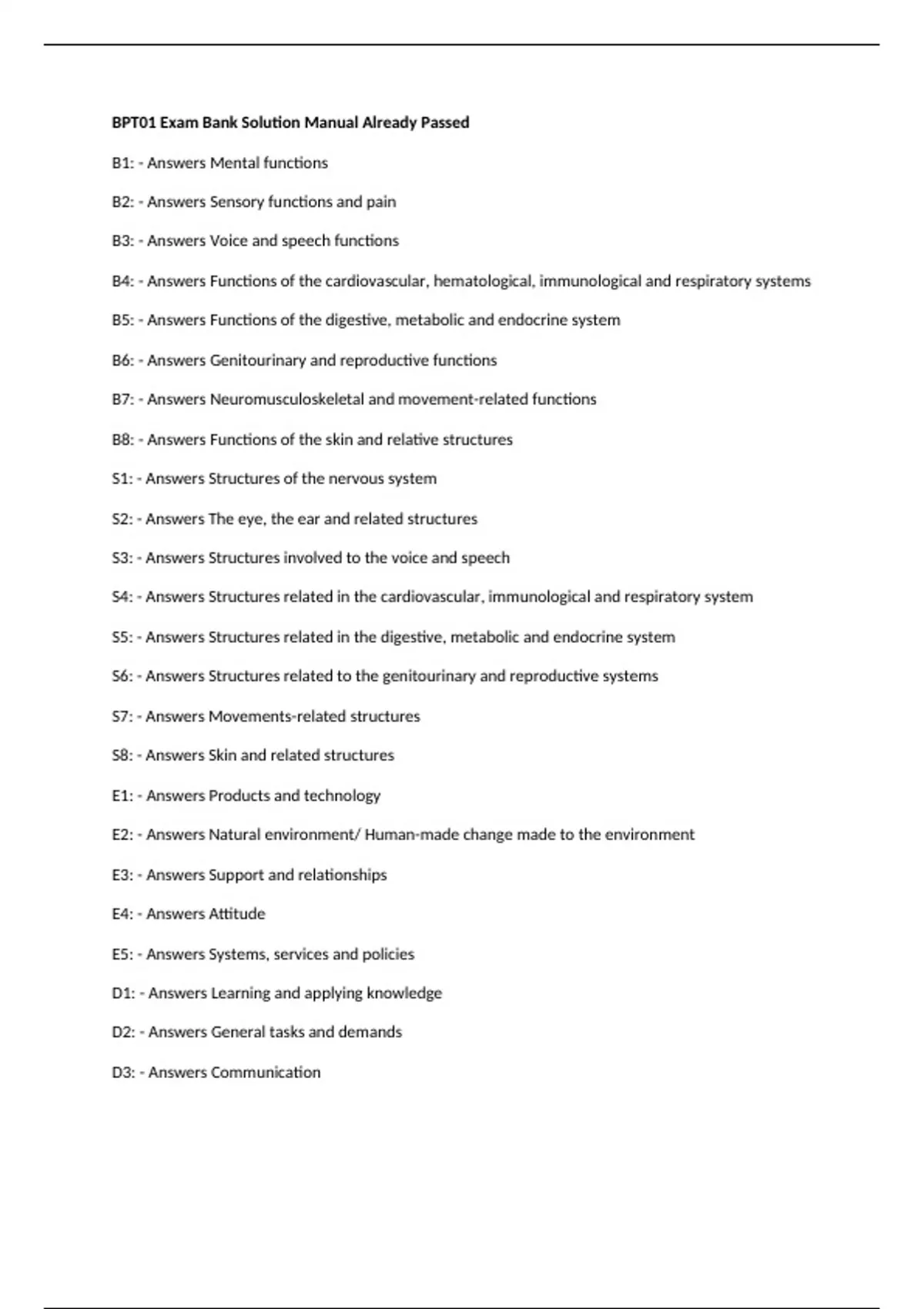 B2: - Answers Sensory functions and pain