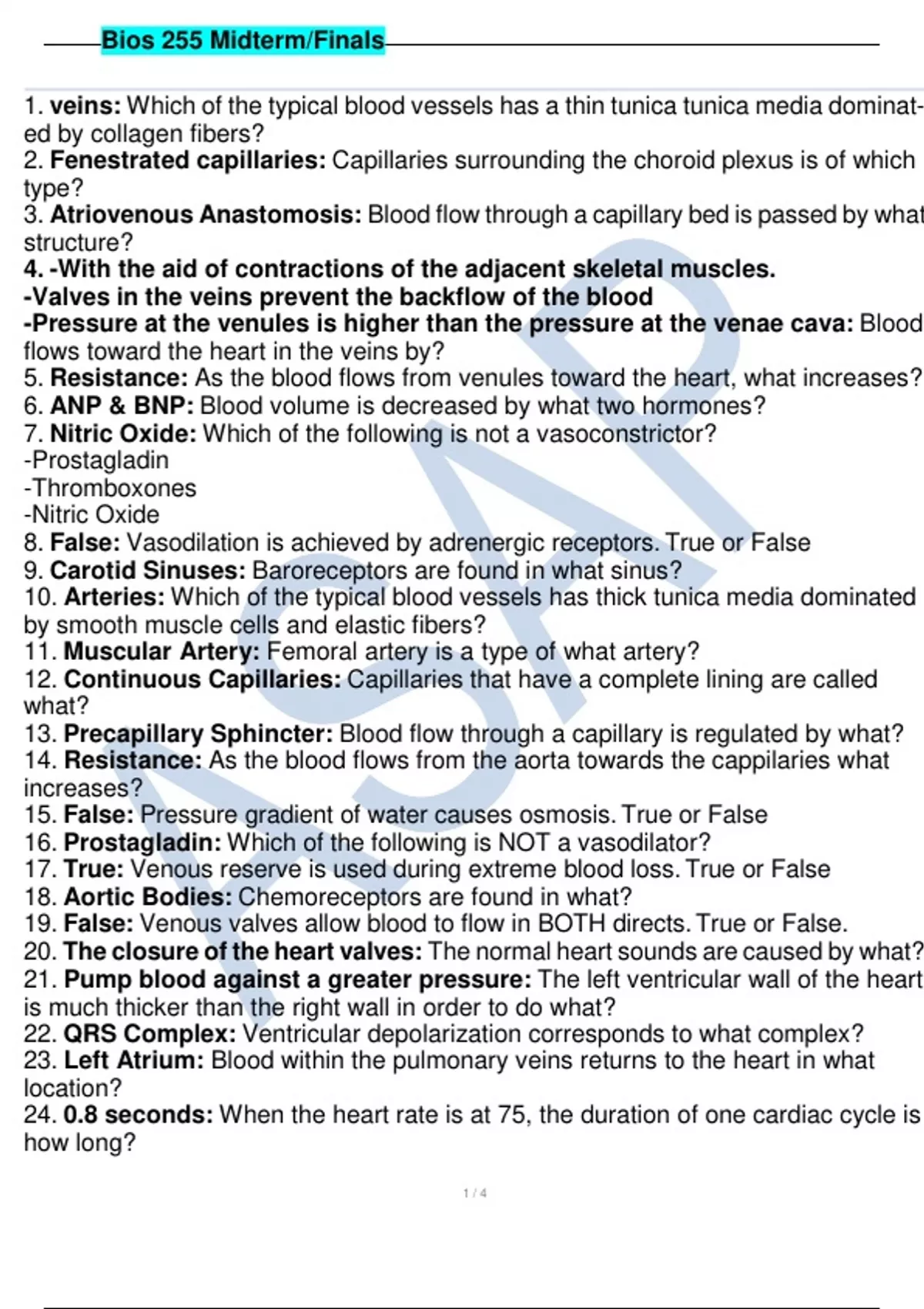 1. veins: Which of the typical blood vessels has a thin tunica tunica media dominat-