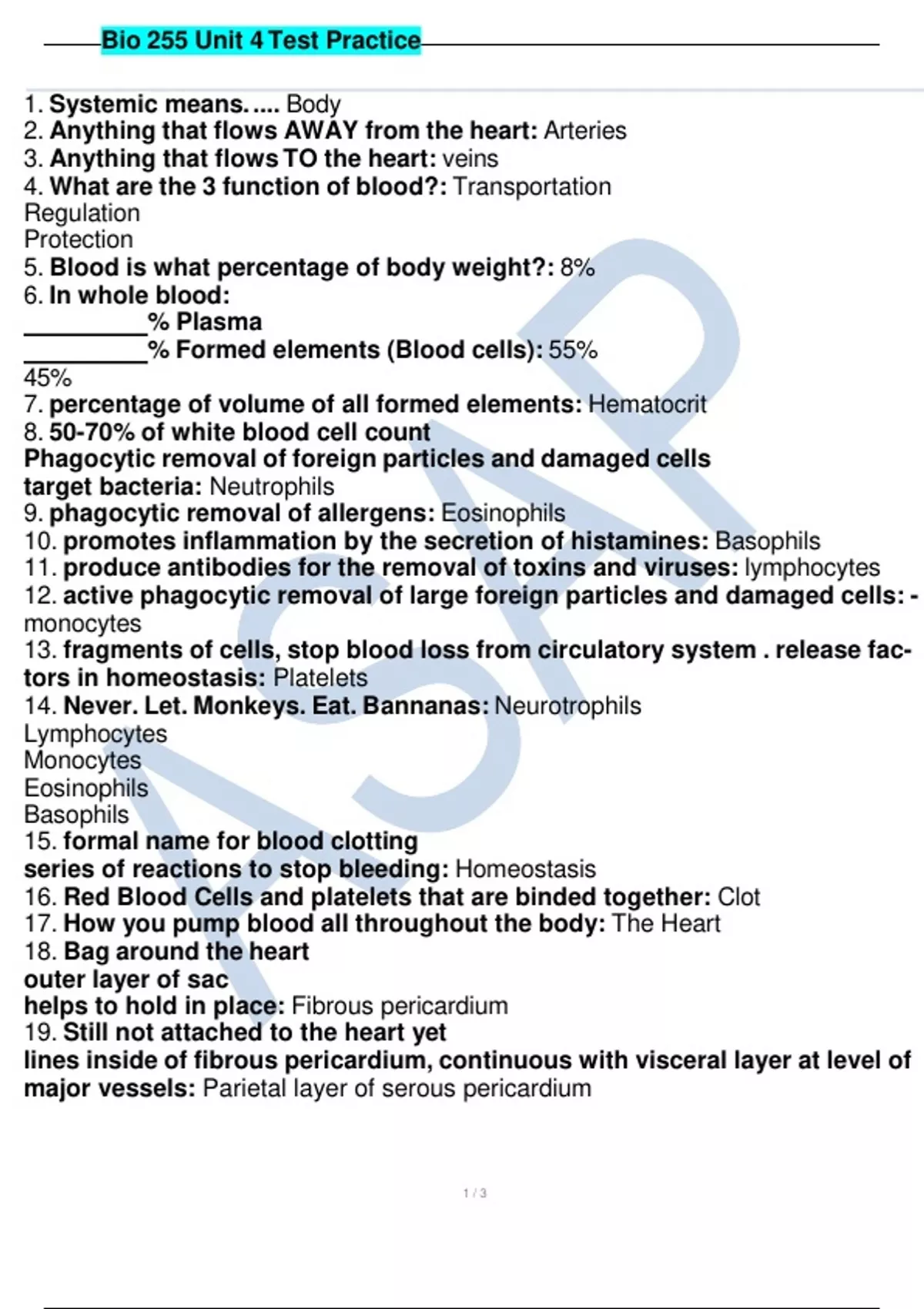 Bio 255 Unit 4 Test Practice. Complete Solution, Already Graded A.