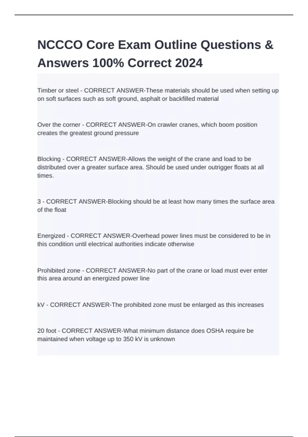 Blocking - CORRECT ANSWER-Allows the weight of the crane and load to be