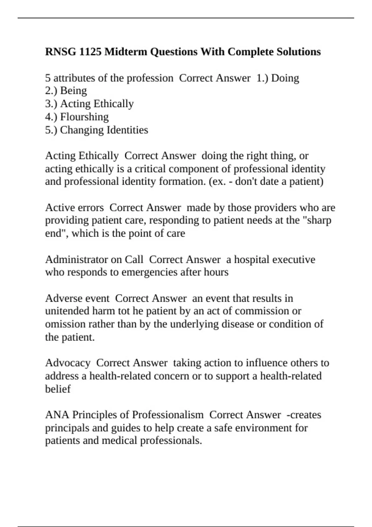5 attributes of the profession Correct Answer 1.) Doing