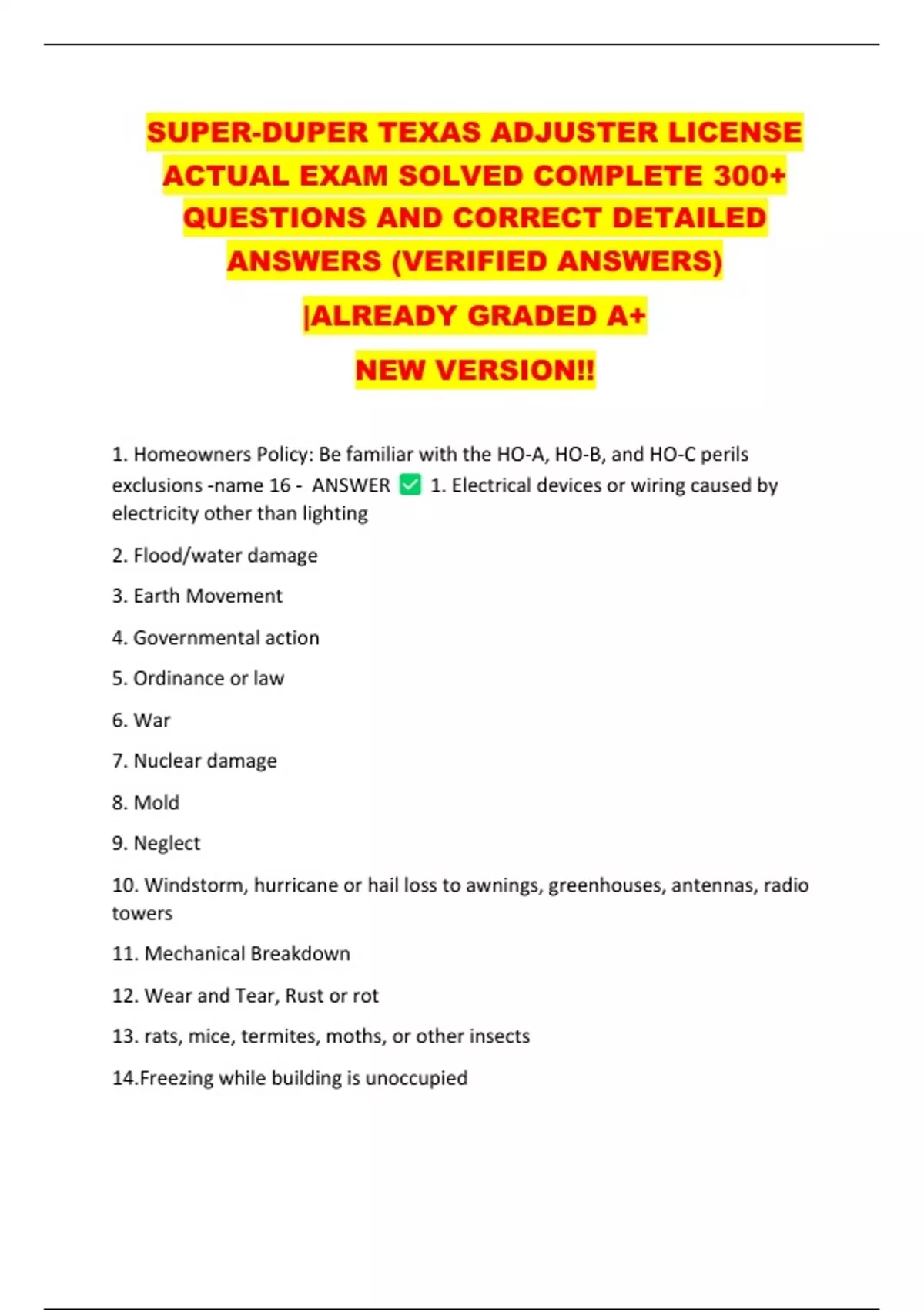 ACTUAL EXAM SOLVED COMPLETE 300+