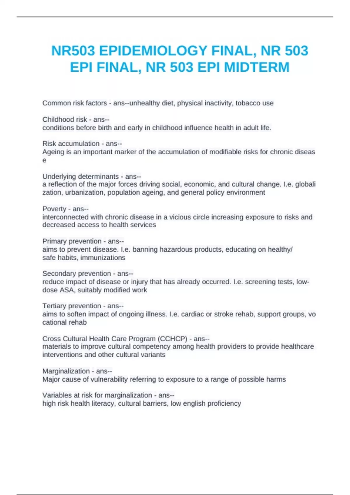 EPI FINAL, NR 503 EPI MIDTERM
