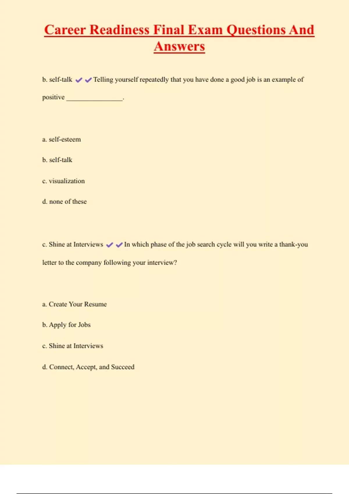 , Career Readiness Final Exam Questions And
