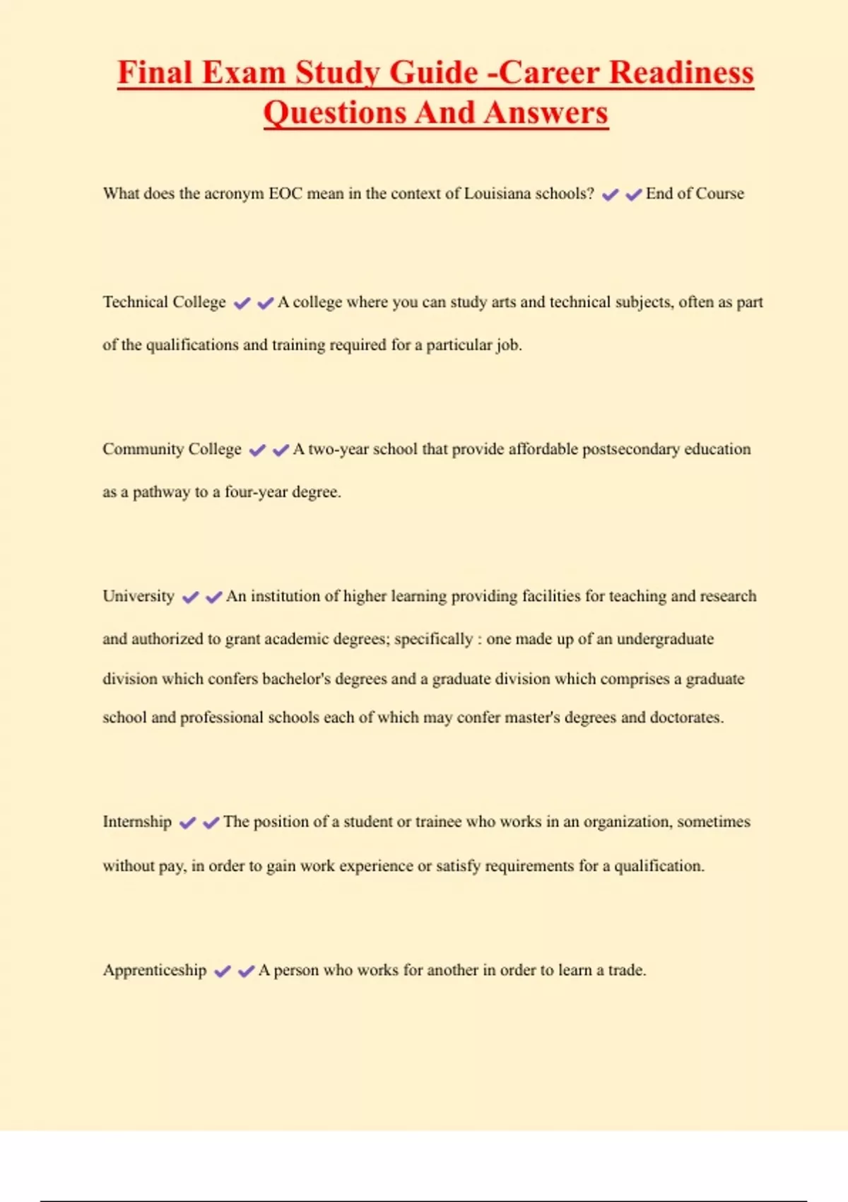 Final Exam Study Guide -Career Readiness Questions And Answers