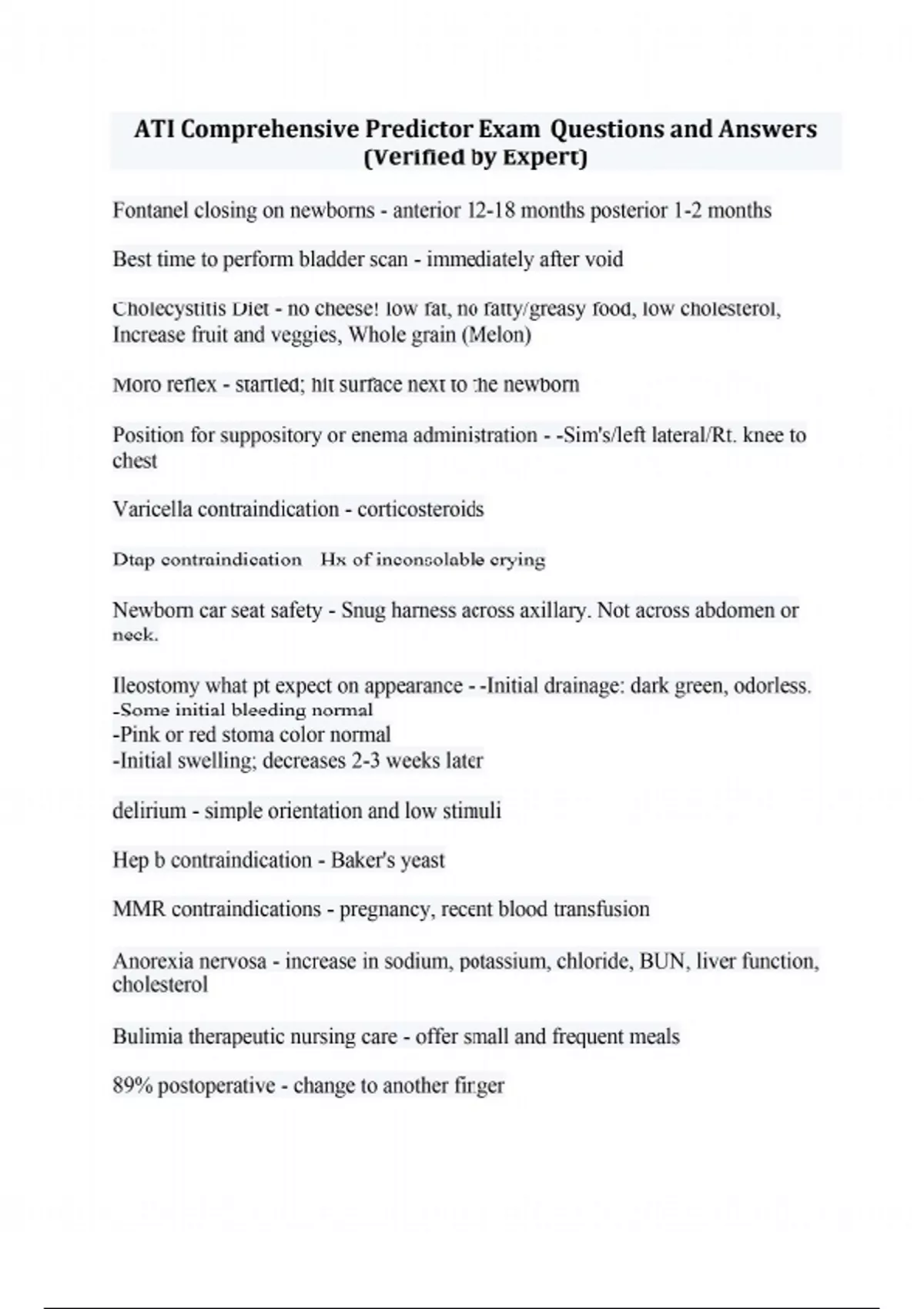ATI Comprehensive Predictor Exam Questions and Answers (Verified by Expert)