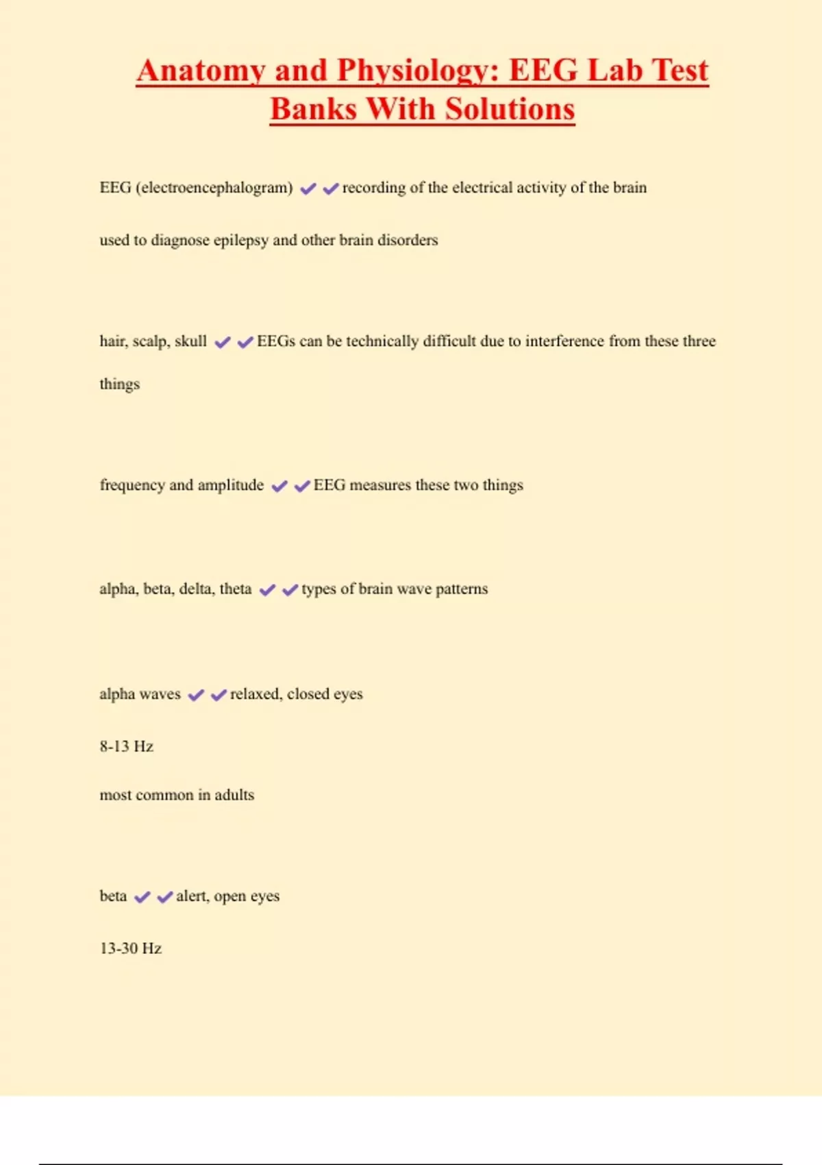 Anatomy and Physiology: EEG Lab Test Banks With Solutions