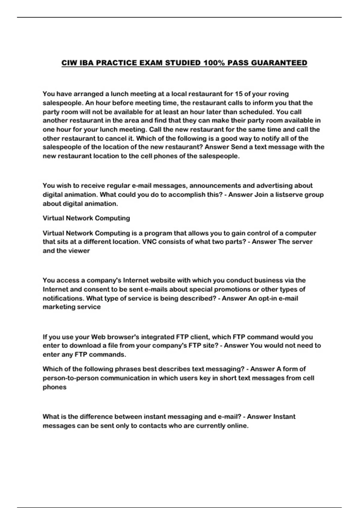 CIW IBA PRACTICE EXAM STUDIED 100% PASS GUARANTEED