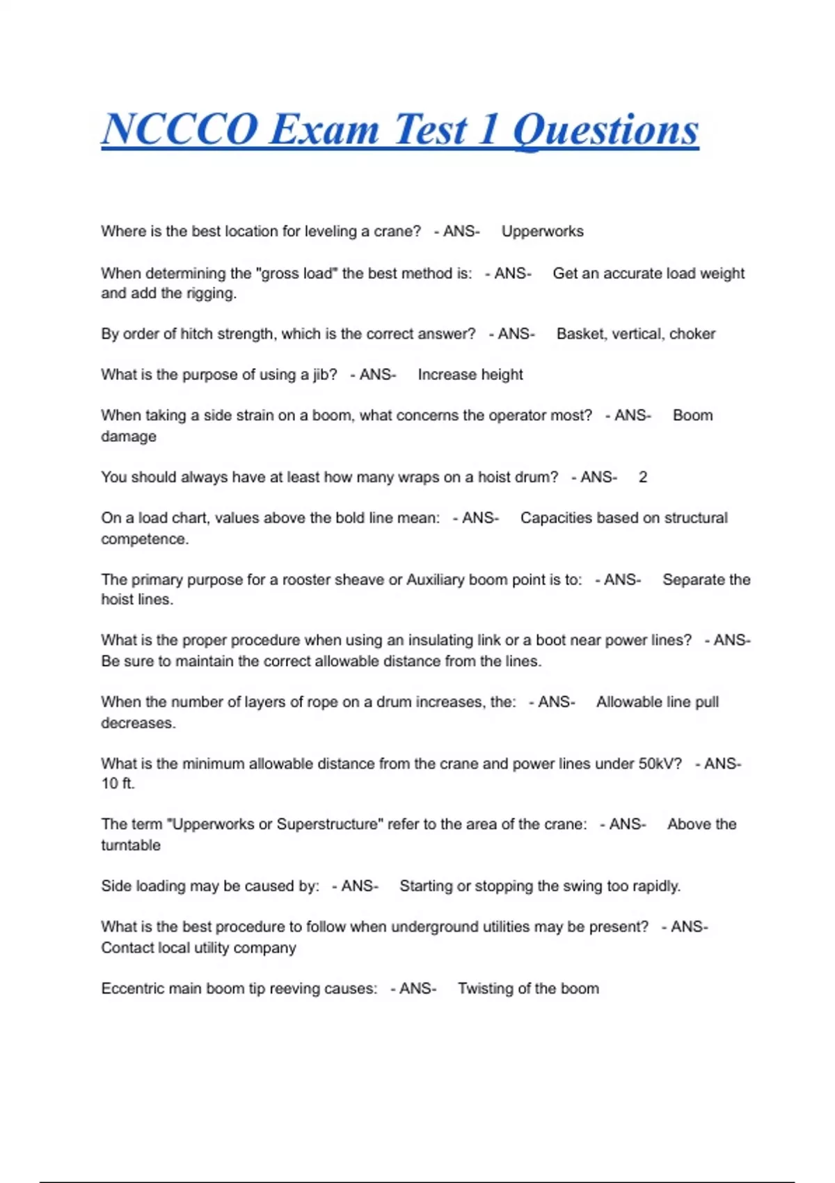 NCCCO Exam Test 1 Questions