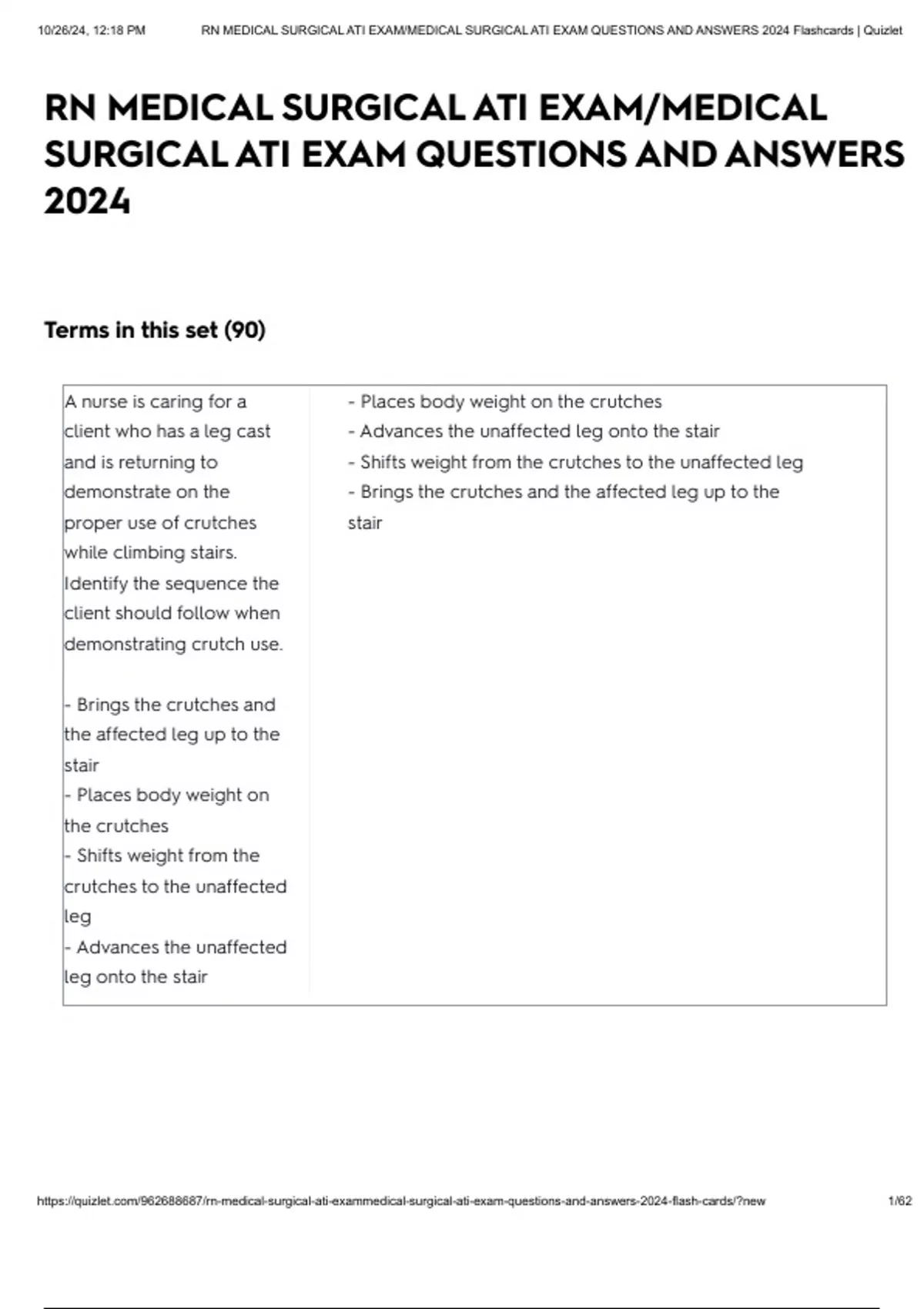 , 10/26/24, 12:18 PM RN MEDICAL SURGICAL ATI EXAM/MEDICAL SURGICAL ATI EXAM QUESTIONS AND ANSWERS 2024 Flashcards | Quizlet