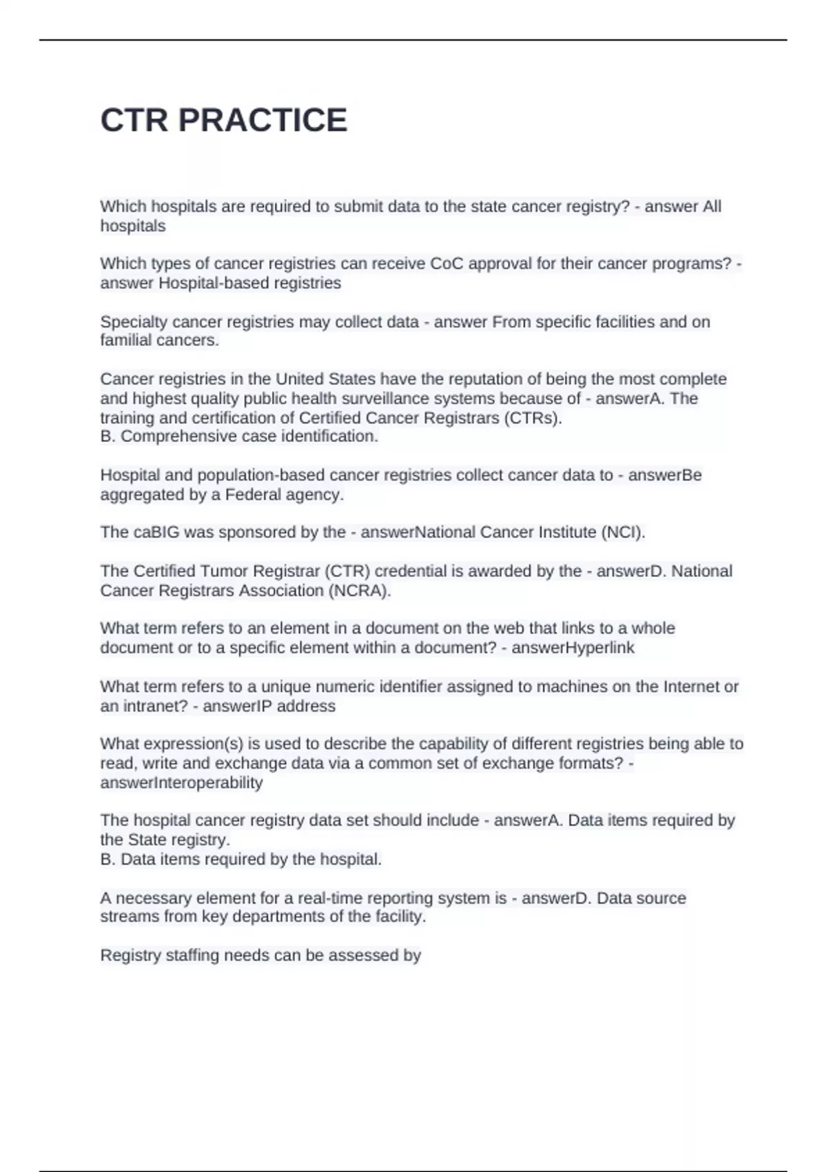 Cancer Registrars Association (NCRA).