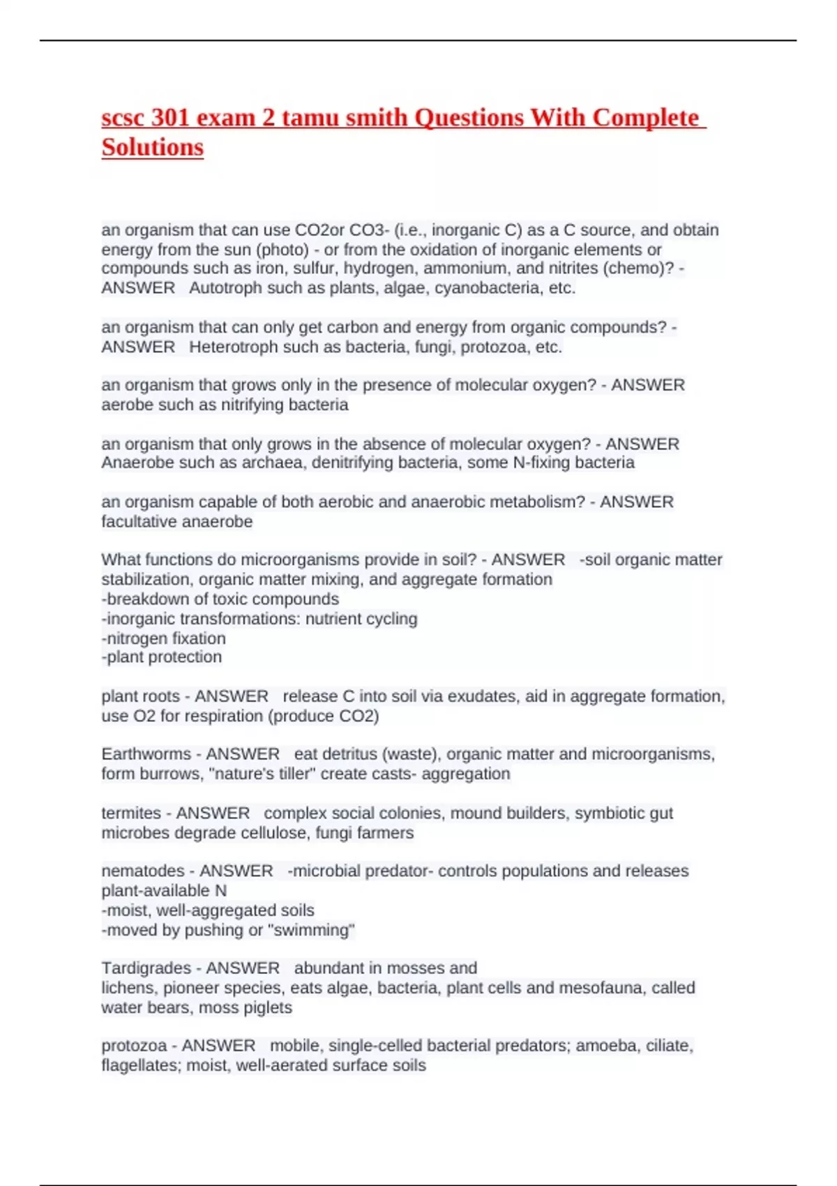 What functions do microorganisms provide in soil? - ANSWER -soil organic matter
