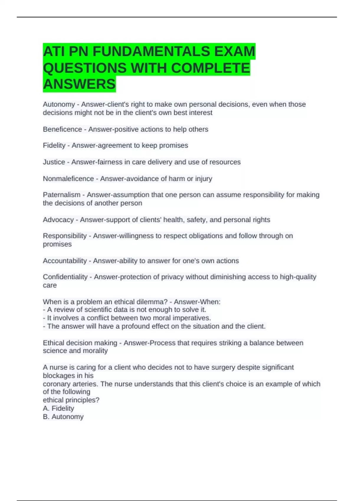 ATI PN FUNDAMENTALS EXAM QUESTIONS WITH COMPLETE ANSWERS