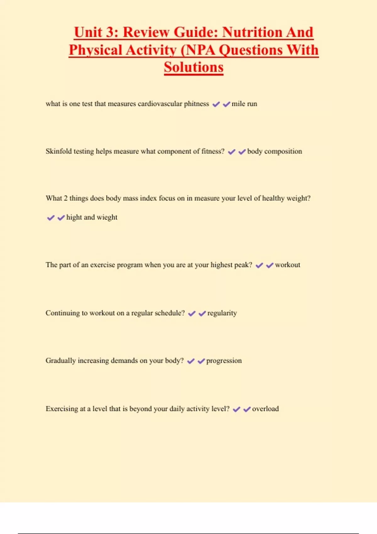 , Unit 3: Review Guide: Nutrition And