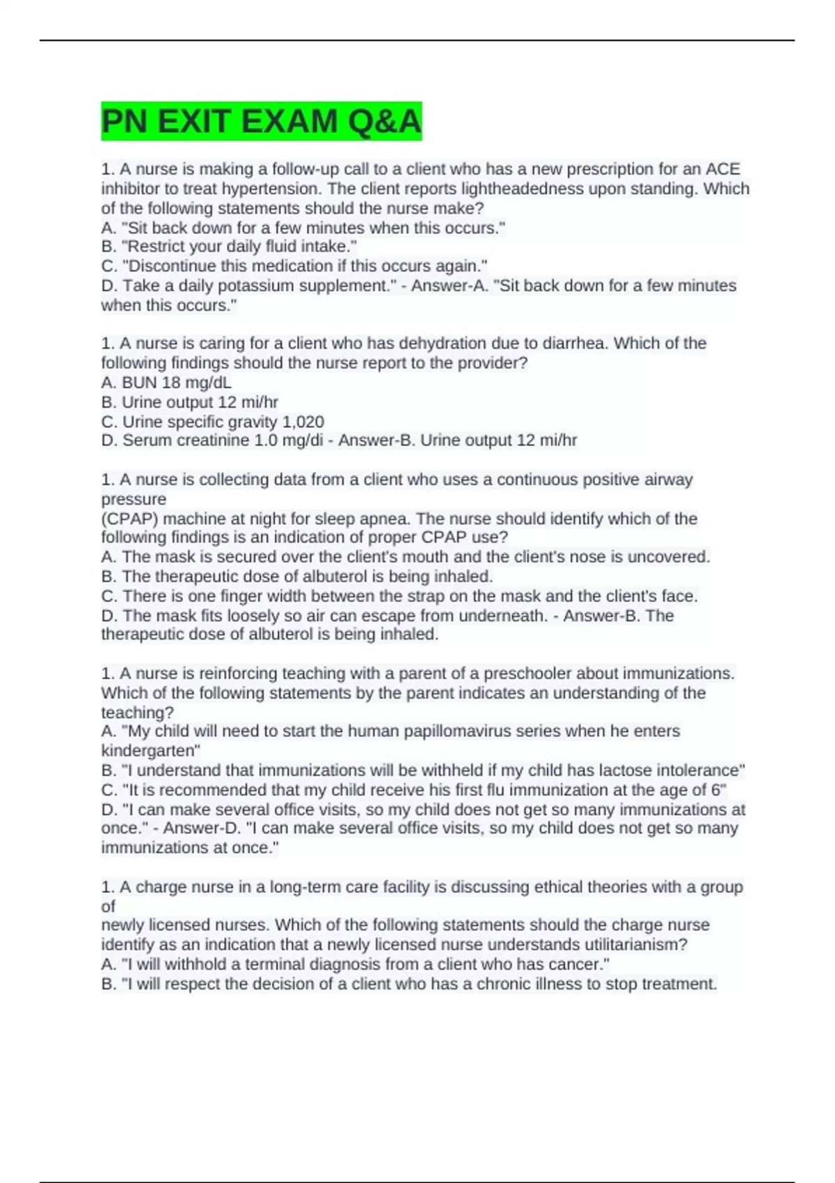 1. A nurse is caring for a client who has dehydration due to diarrhea. Which of the