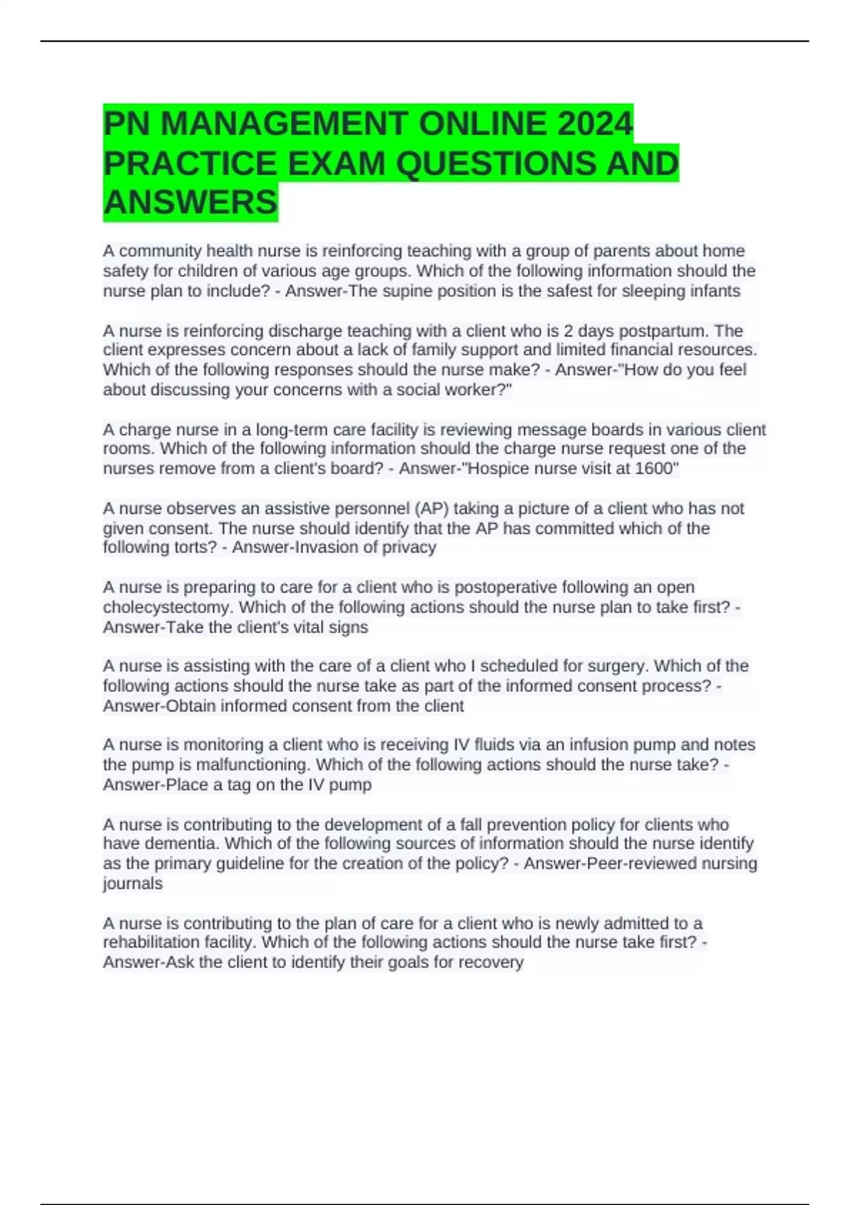 PRACTICE EXAM QUESTIONS AND