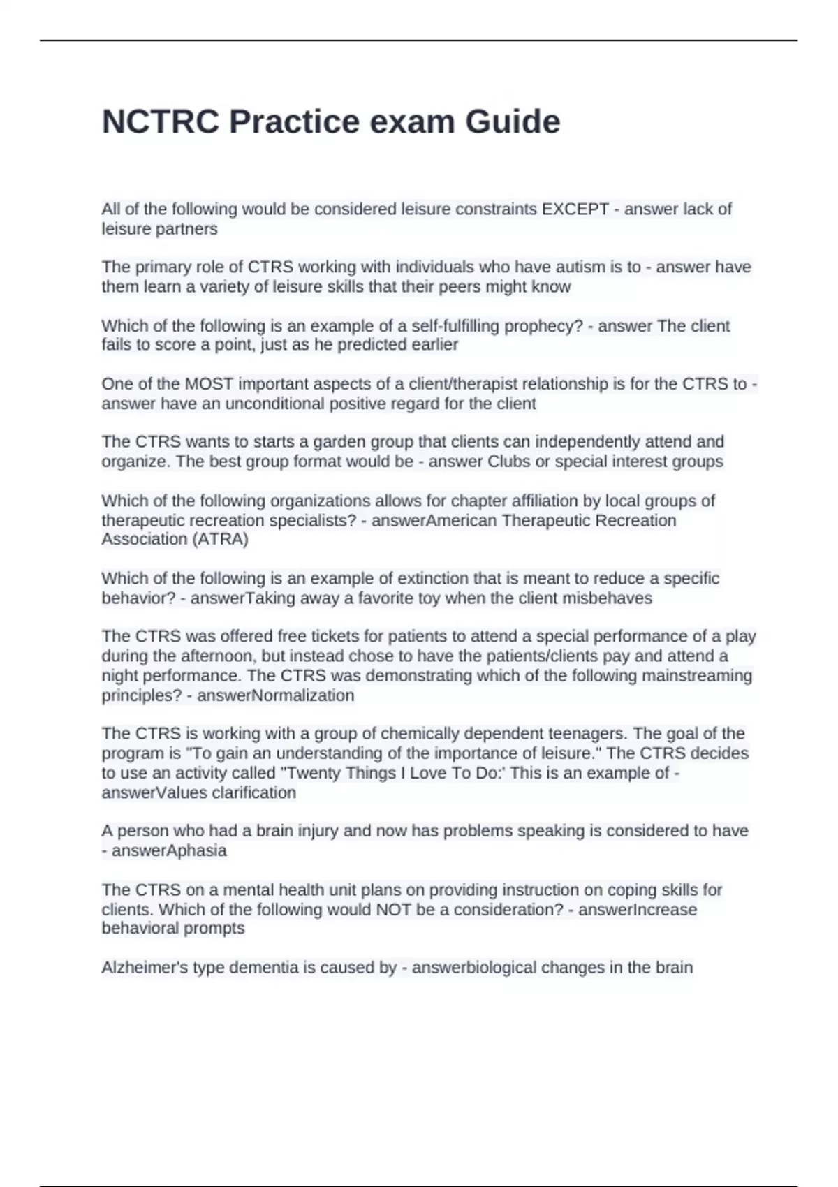 NCTRC Practice exam Guide