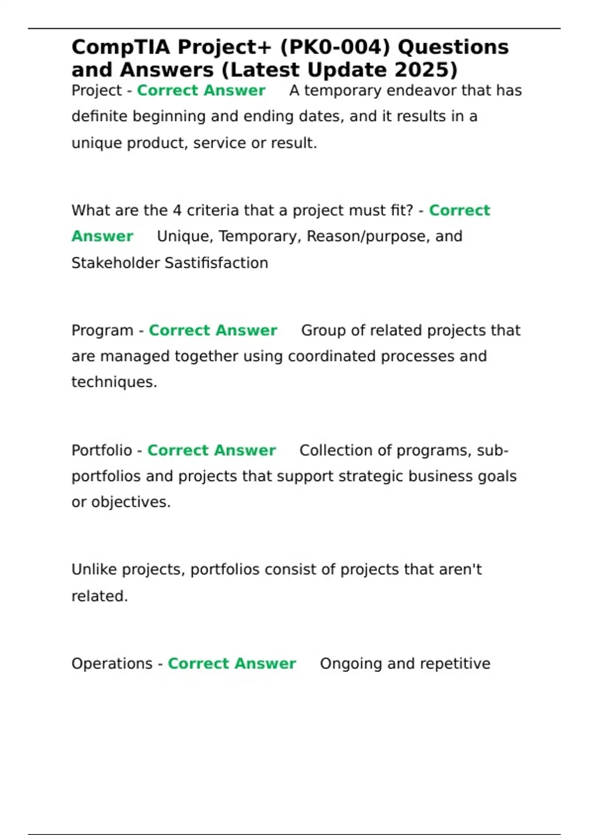 Answer ✅Unique, Temporary, Reason/purpose, and