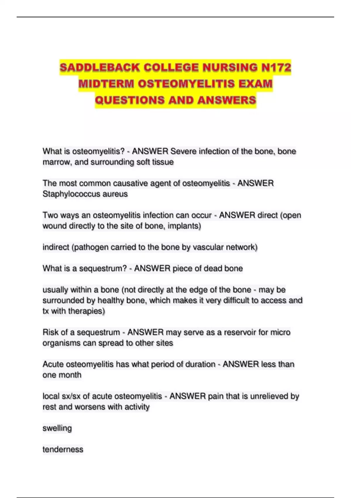 local sx/sx of acute osteomyelitis - ANSWER pain that is unrelieved by