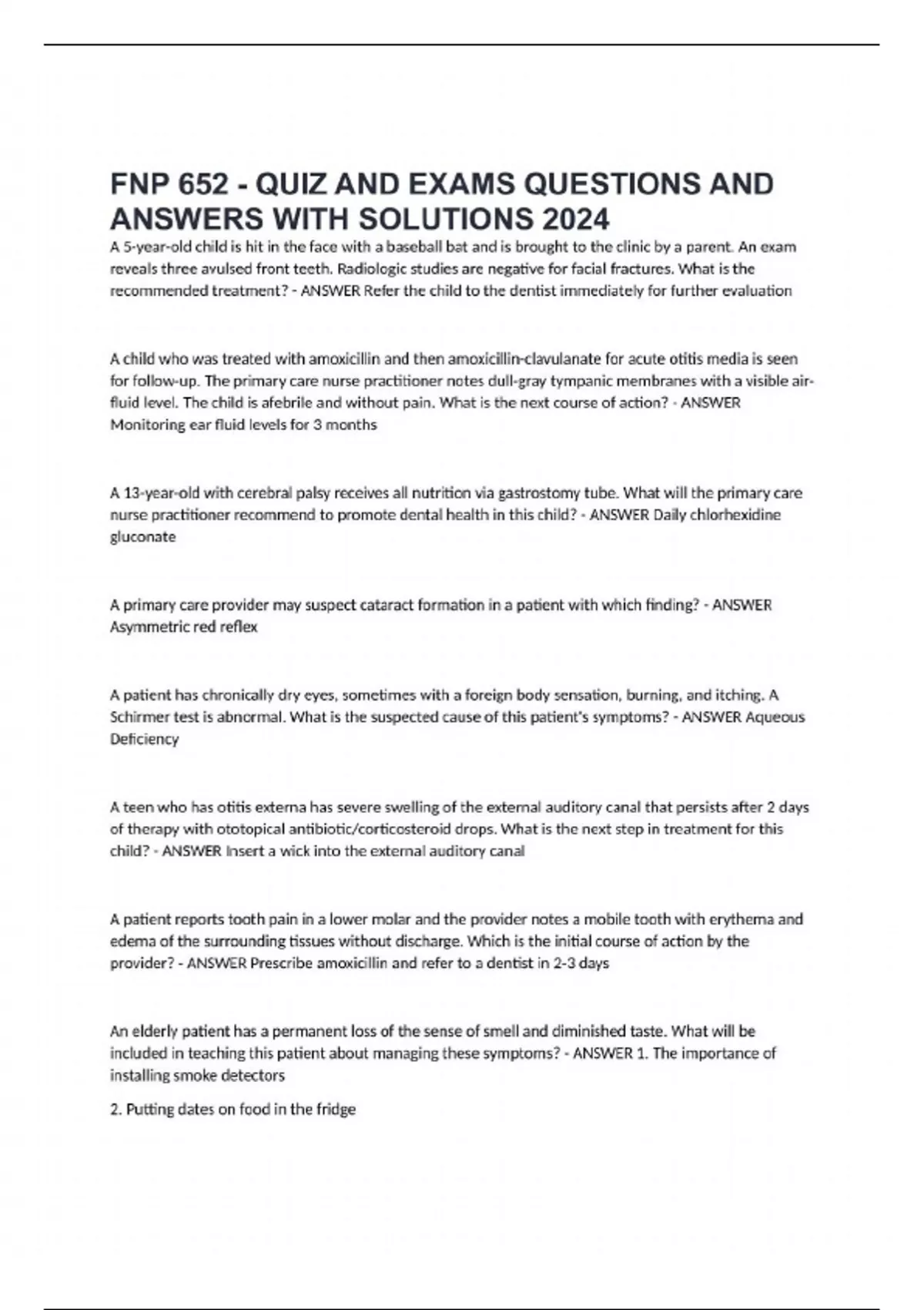 FNP 652 - QUIZ AND EXAMS QUESTIONS AND ANSWERS WITH SOLUTIONS 2024