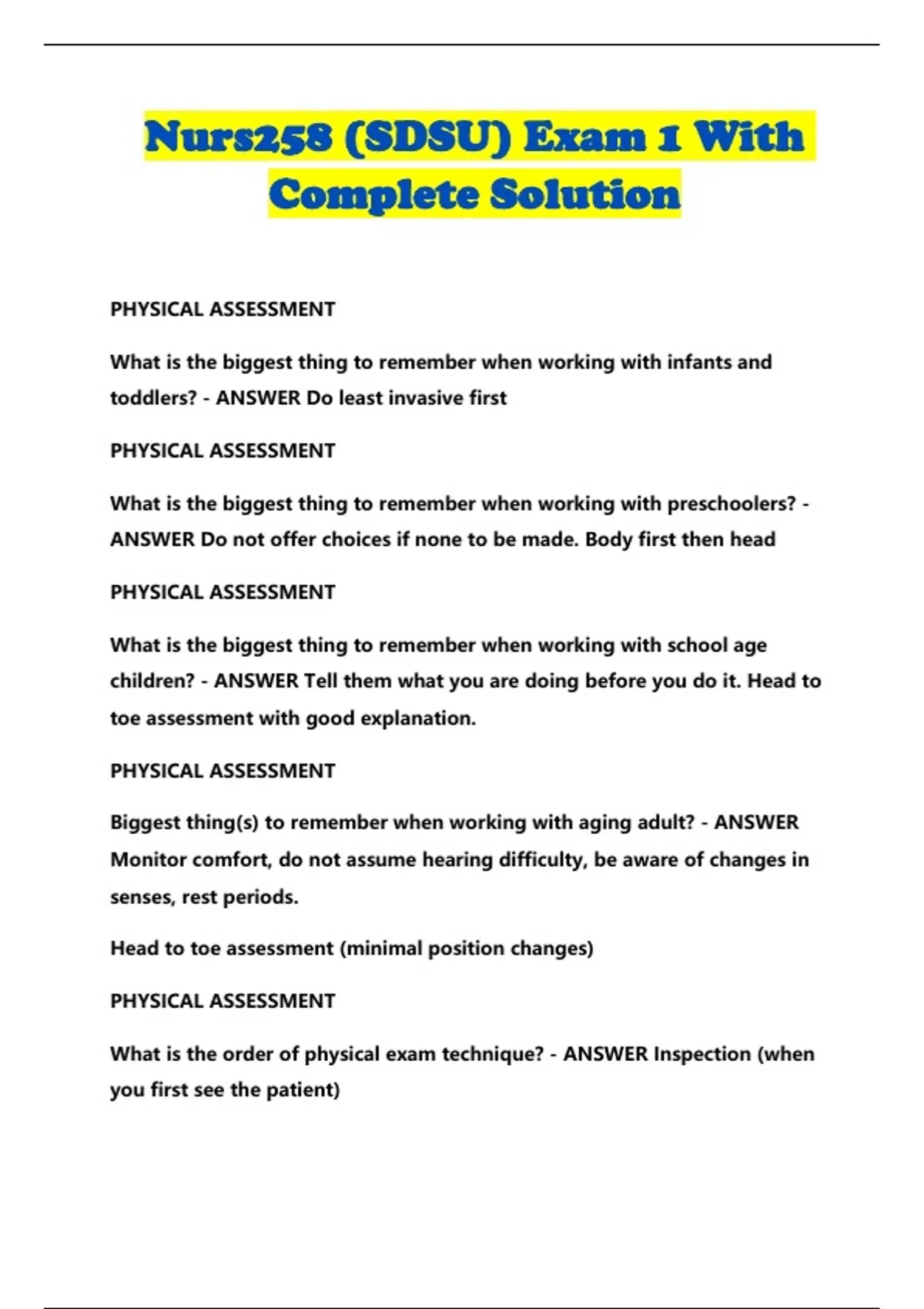 Nurs258 (SDSU) Exam 1 With Complete Solution...