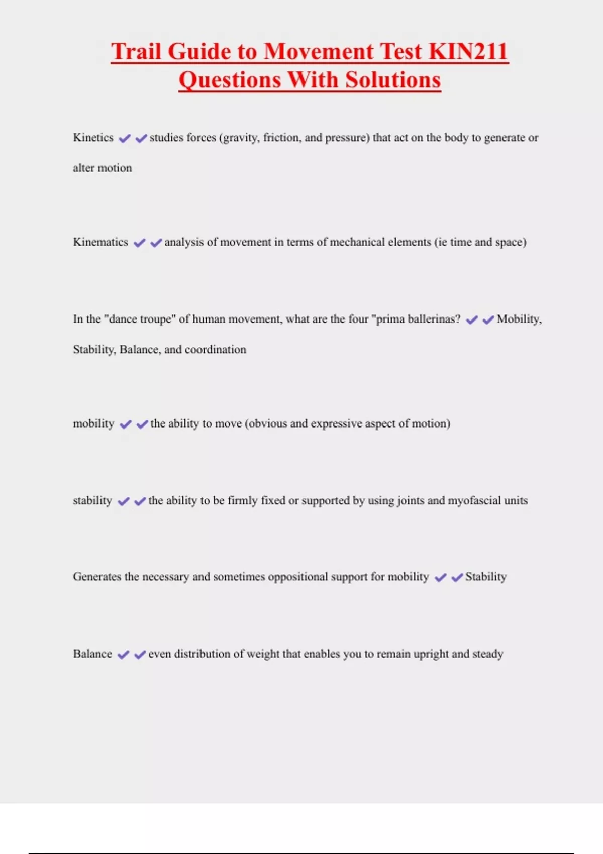Trail Guide to Movement Test KIN211 Questions With Solutions