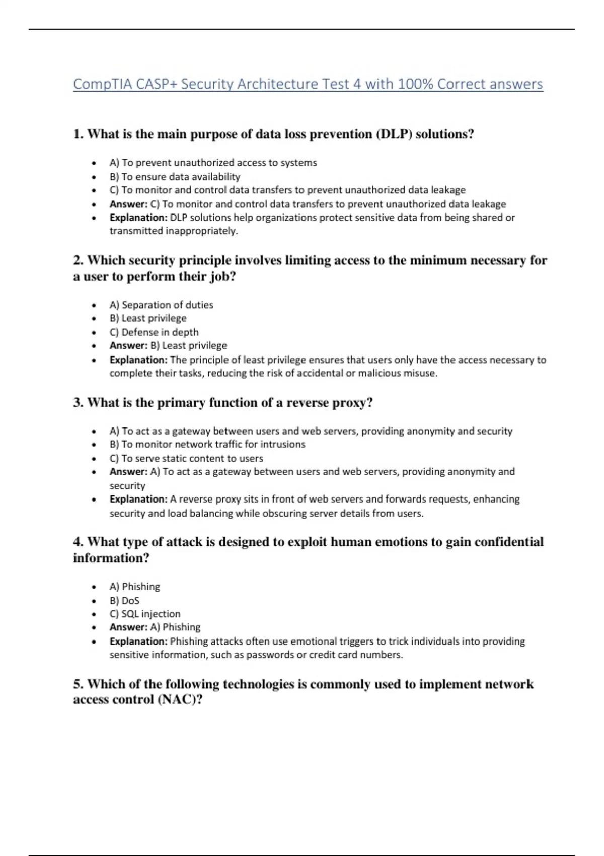 CompTIA CASP+ Security Architecture Test 4 with 100% Correct answers