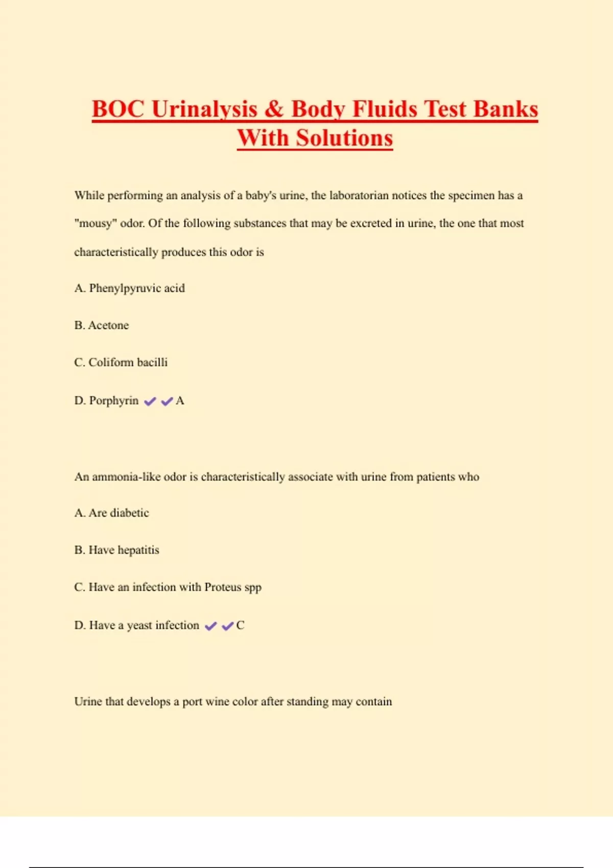 BOC Urinalysis & Body Fluids Test Banks With Solutions