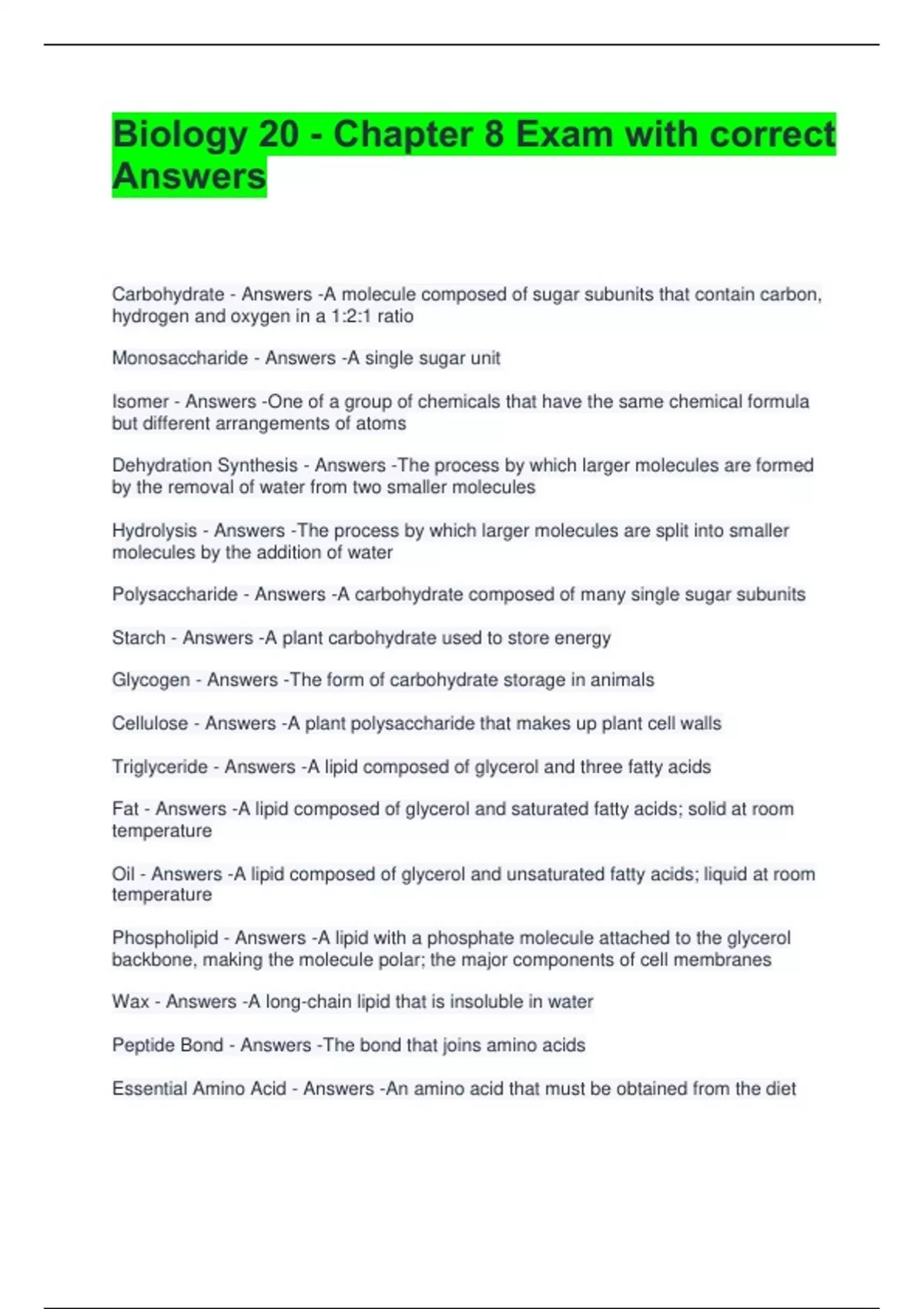 Fat - Answers -A lipid composed of glycerol and saturated fatty acids; solid at room