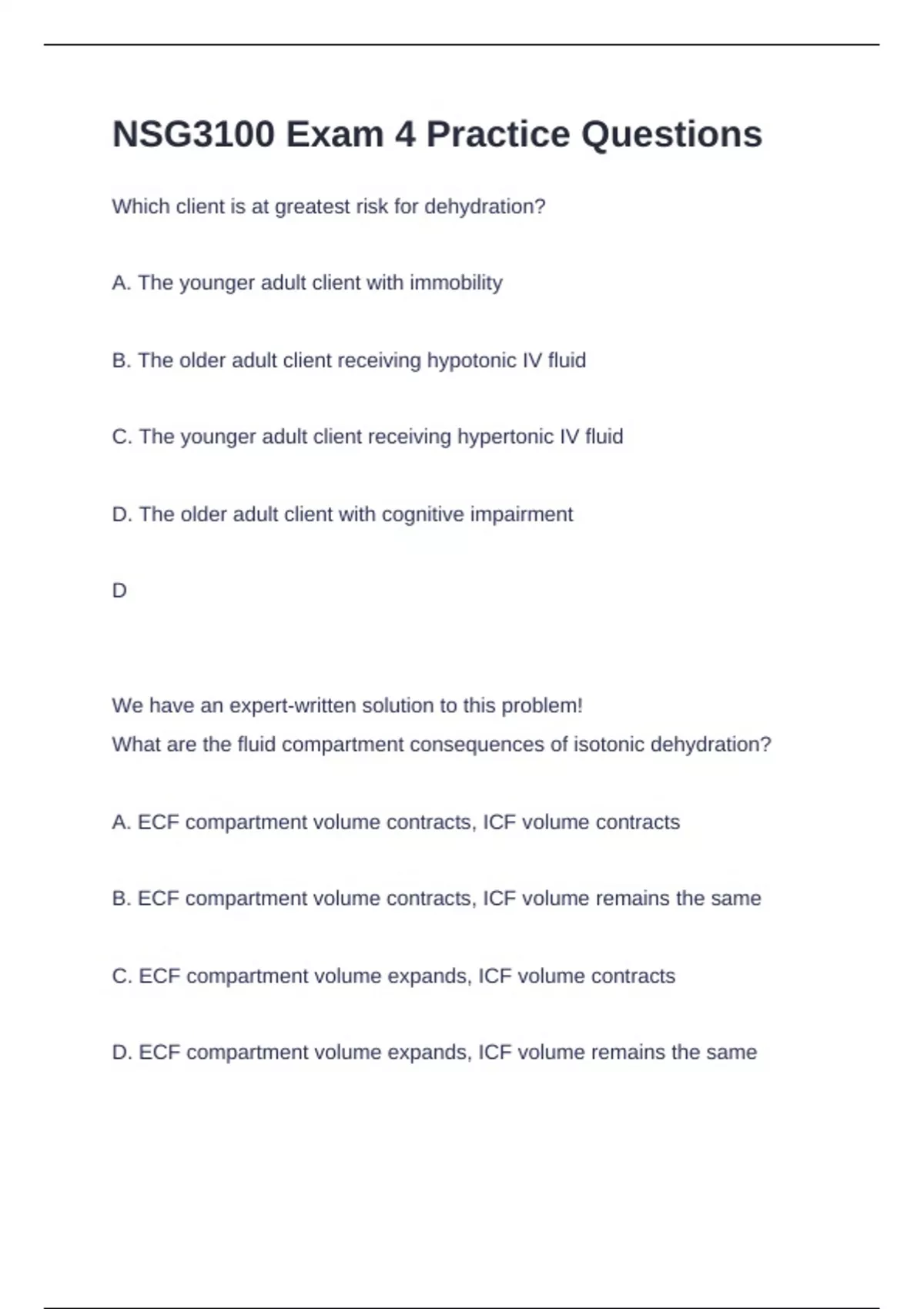 B. The older adult client receiving hypotonic IV fluid