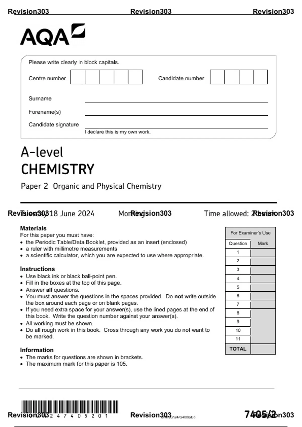 • the Periodic Table/Data Booklet, provided as an insert (enclosed) Question Mark
