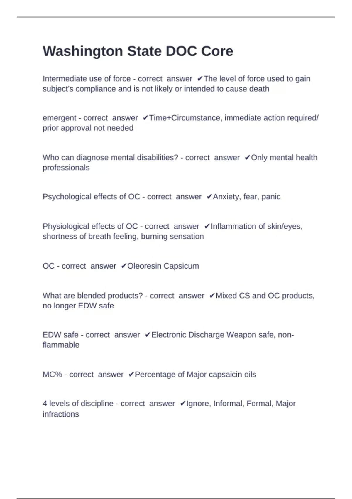 OC - correct answer ✔Oleoresin Capsicum