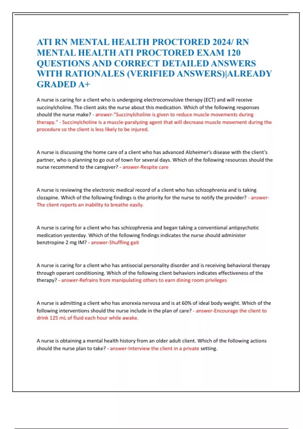 MENTAL HEALTH ATI PROCTORED EXAM 120