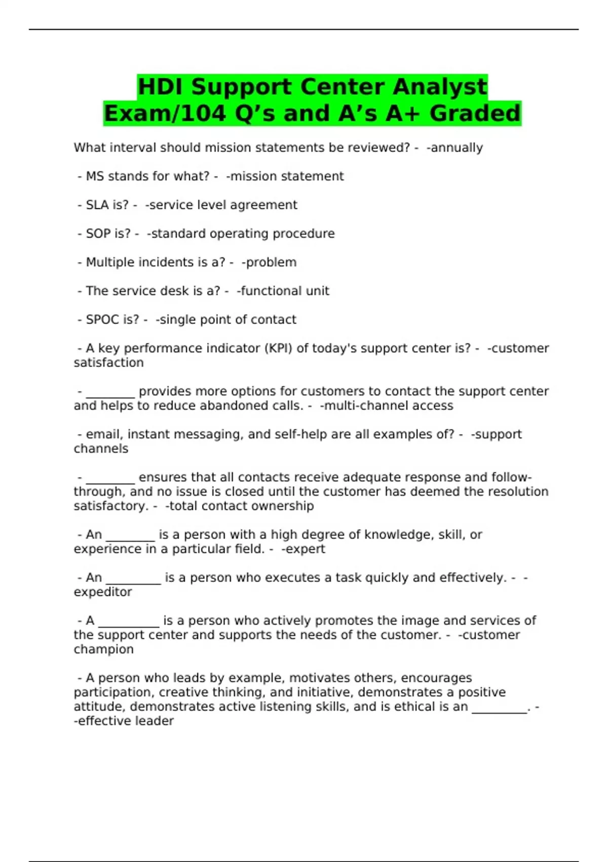- A key performance indicator (KPI) of today's support center is? - -customer