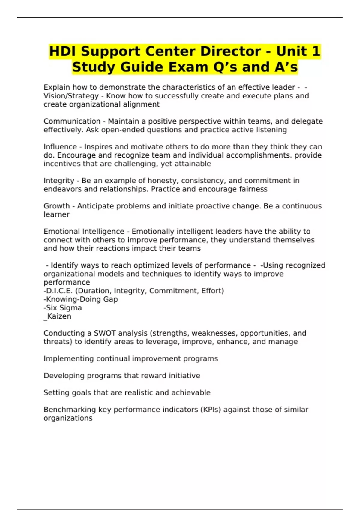 HDI Support Center Director - Unit 1 Study Guide Exam Q’s and A’s