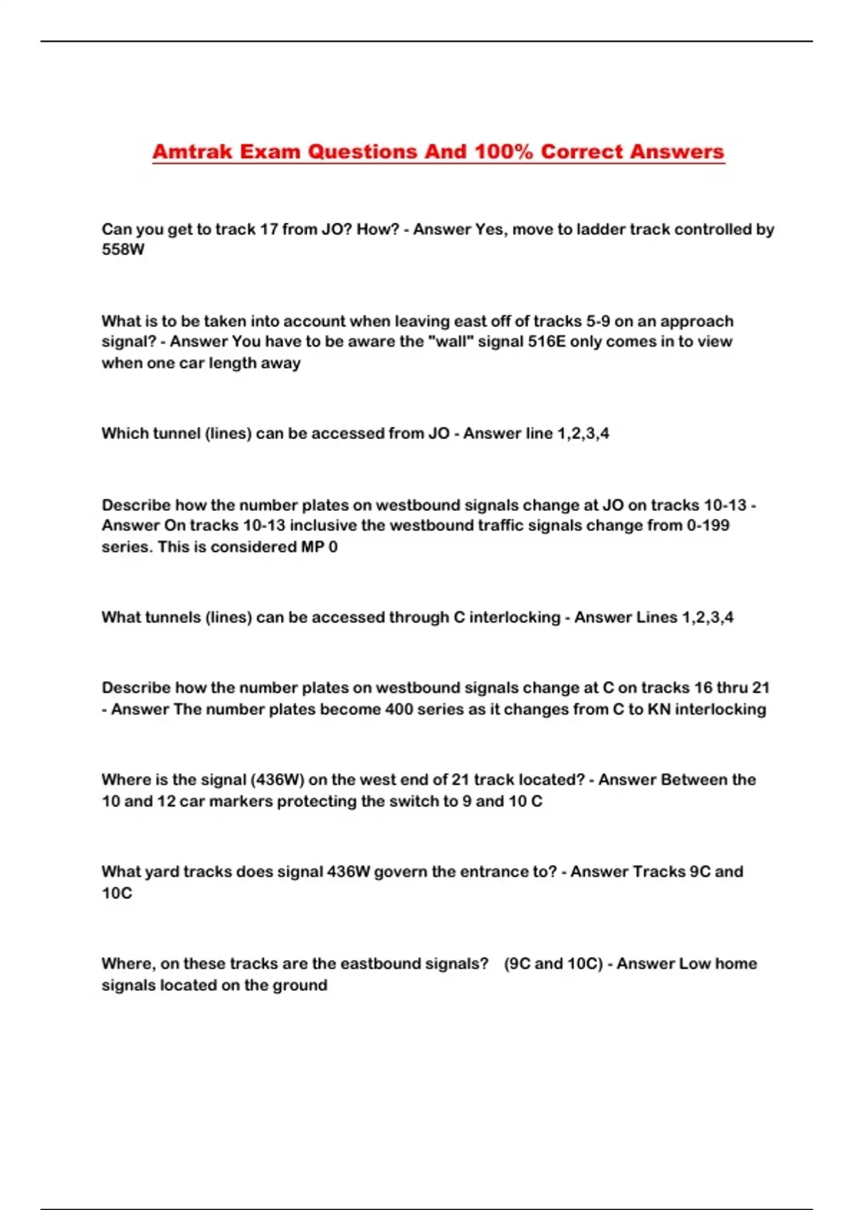 Amtrak Exam Questions And 100% Correct Answers
