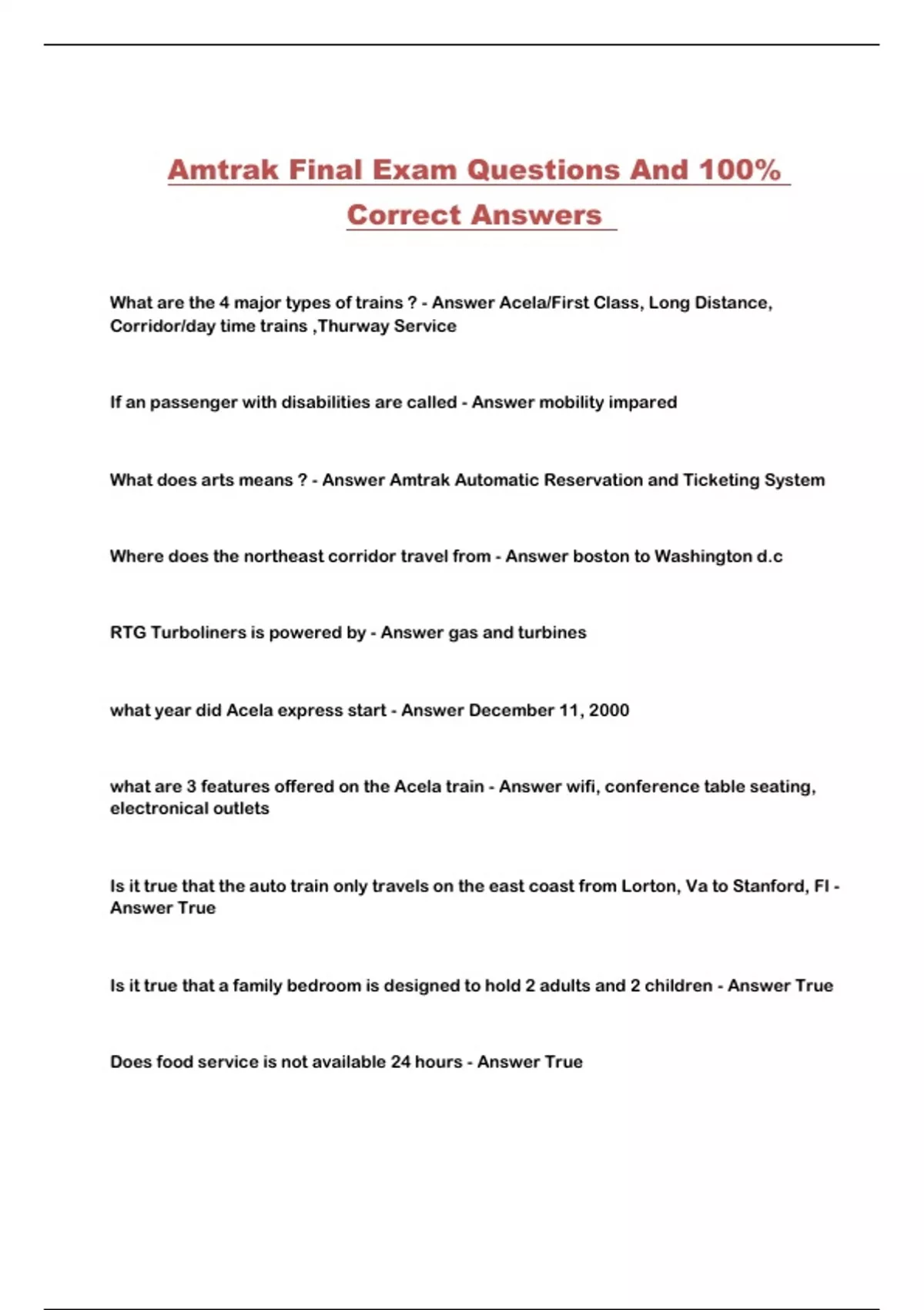 What are the 4 major types of trains ? - Answer Acela/First Class, Long Distance,