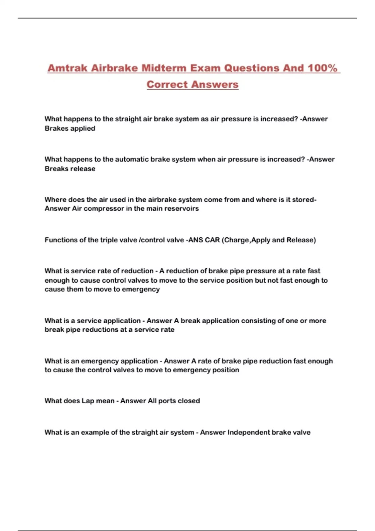 Amtrak Airbrake Midterm Exam Questions And 100%