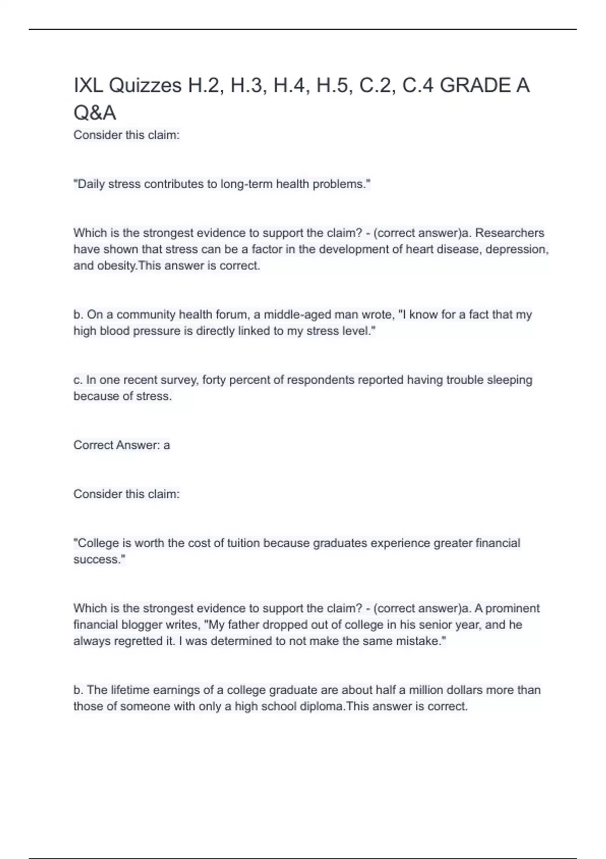 IXL Quizzes H.2, H.3, H.4, H.5, C.2, C.4 GRADE A