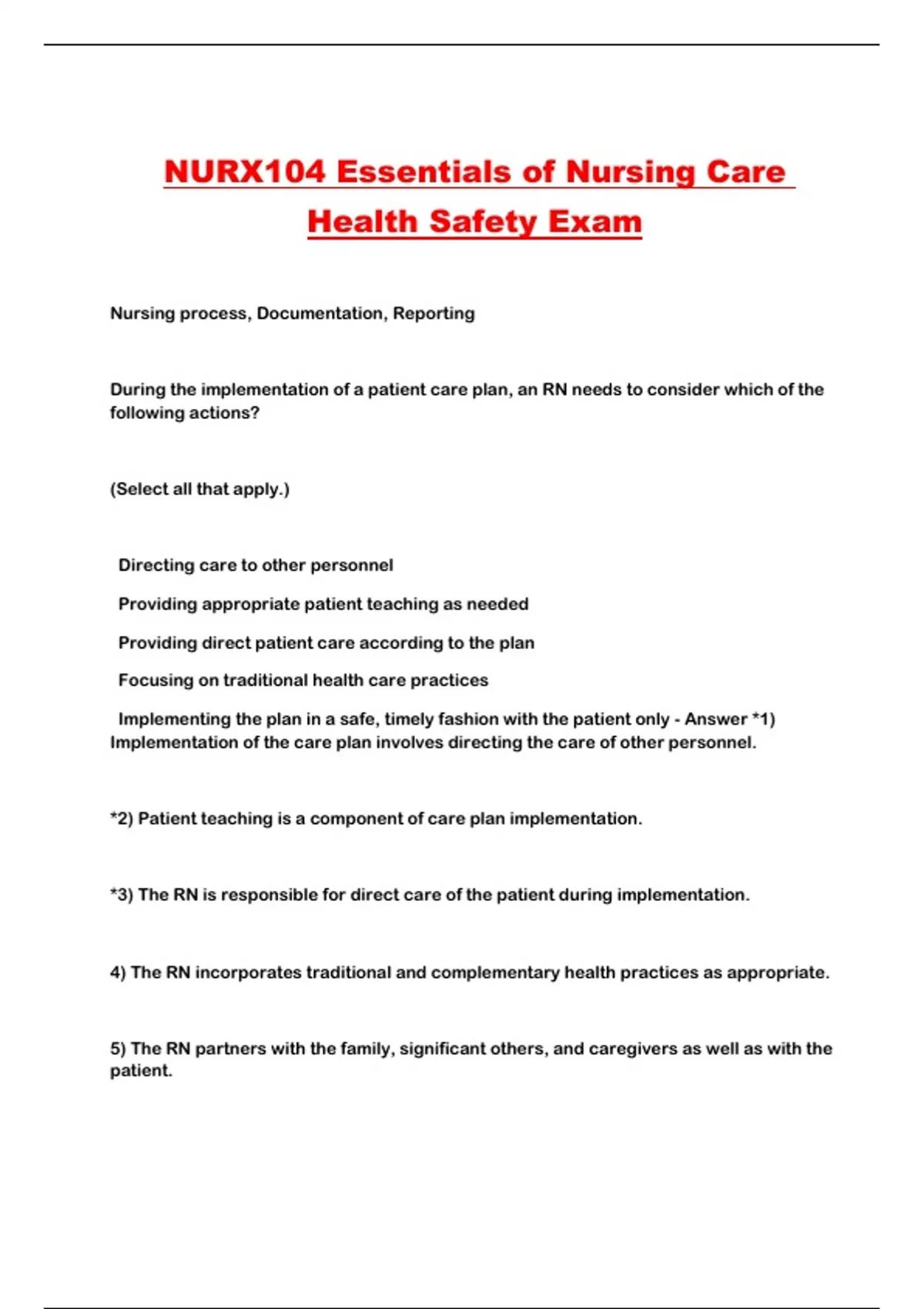 NURX104 Essentials of Nursing Care Health Safety Exam...