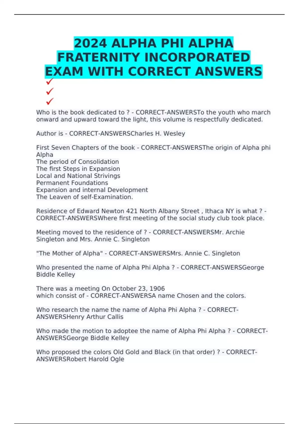 2024 ALPHA PHI ALPHA FRATERNITY INCORPORATED EXAM WITH CORRECT ANSWERS