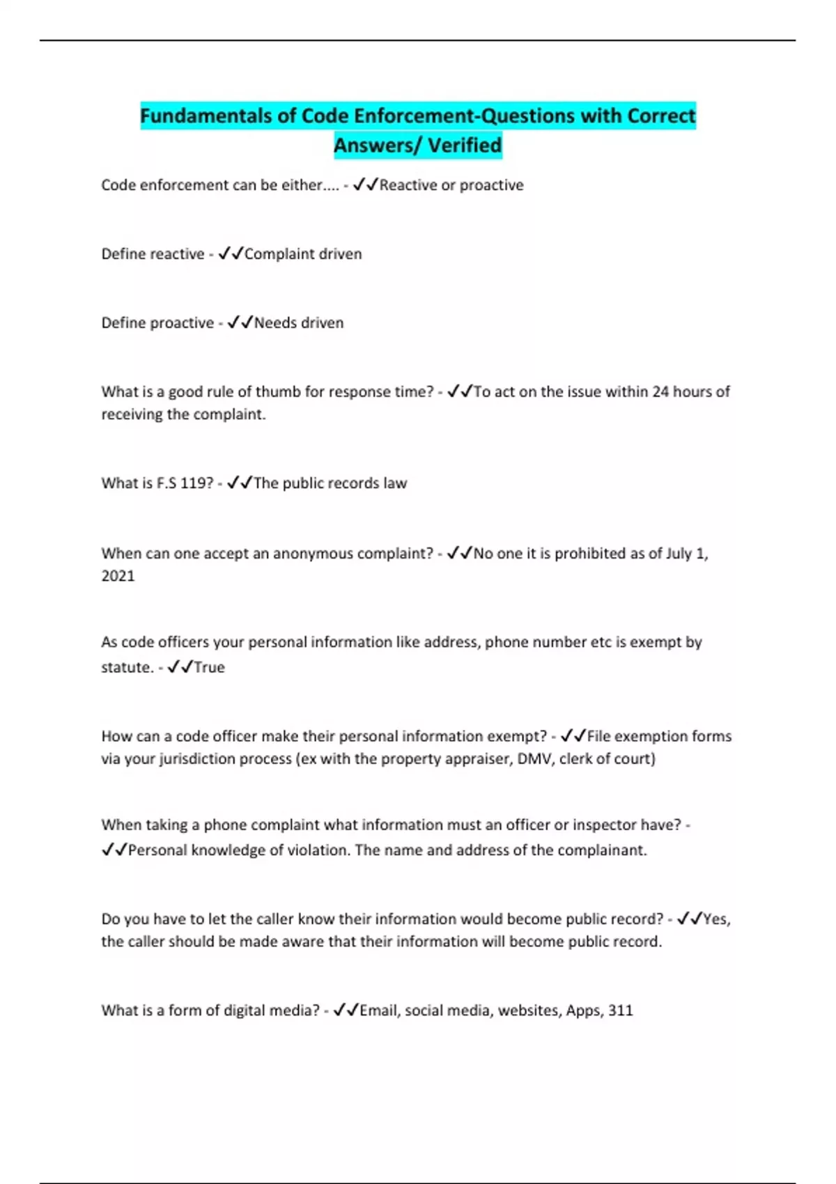 Code enforcement can be either.... - ✔✔Reactive or proactive