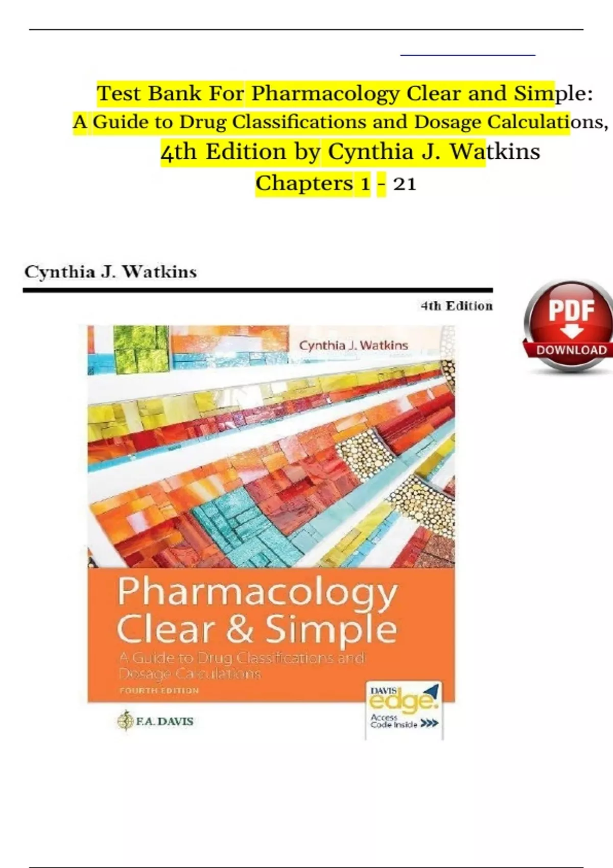 Pharmacology Clear and Simple- A Guide to Drug Classifications and Dosage Calculations