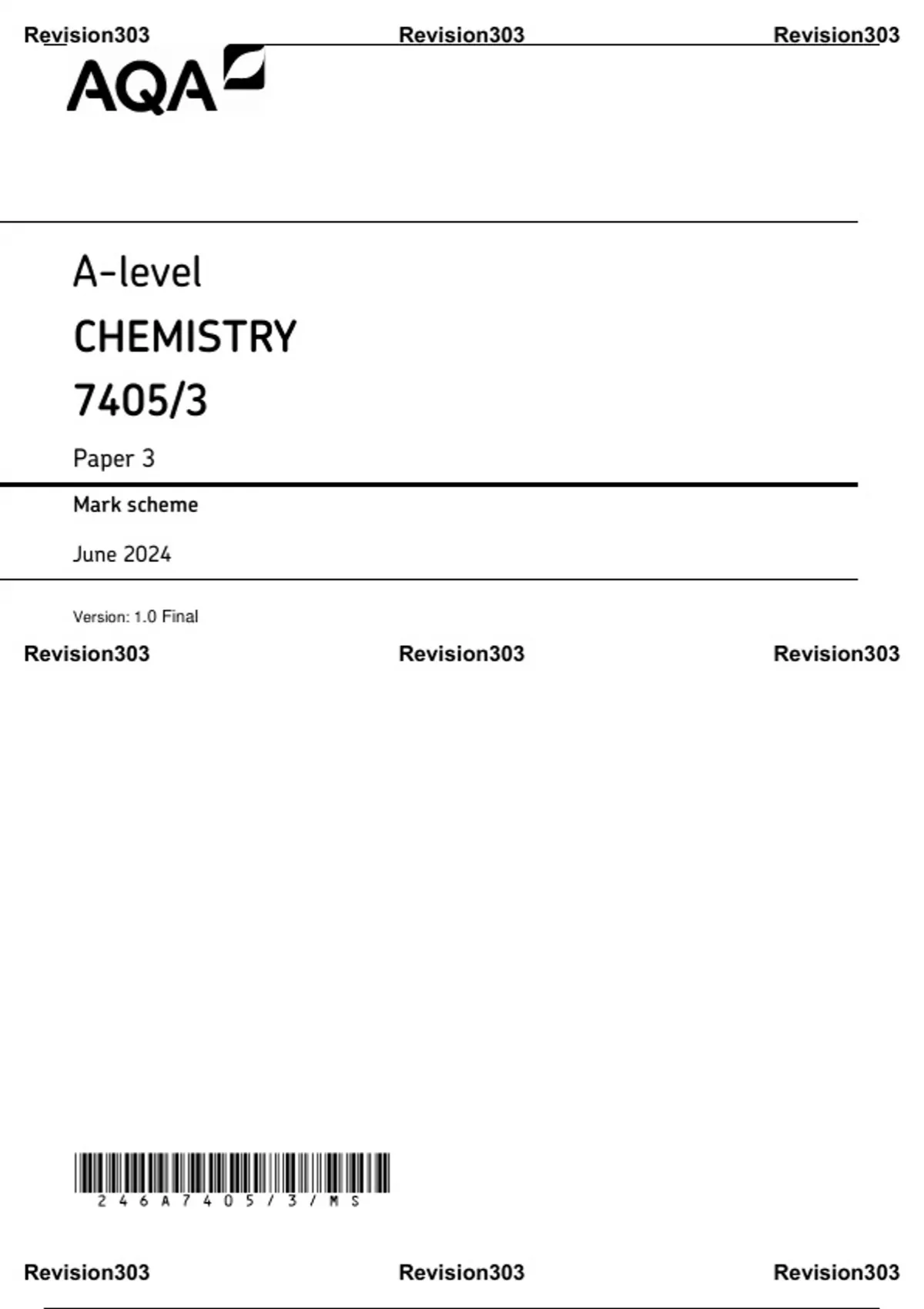 A-Level AQA 2024 Chemistry Paper 3 Mark Scheme