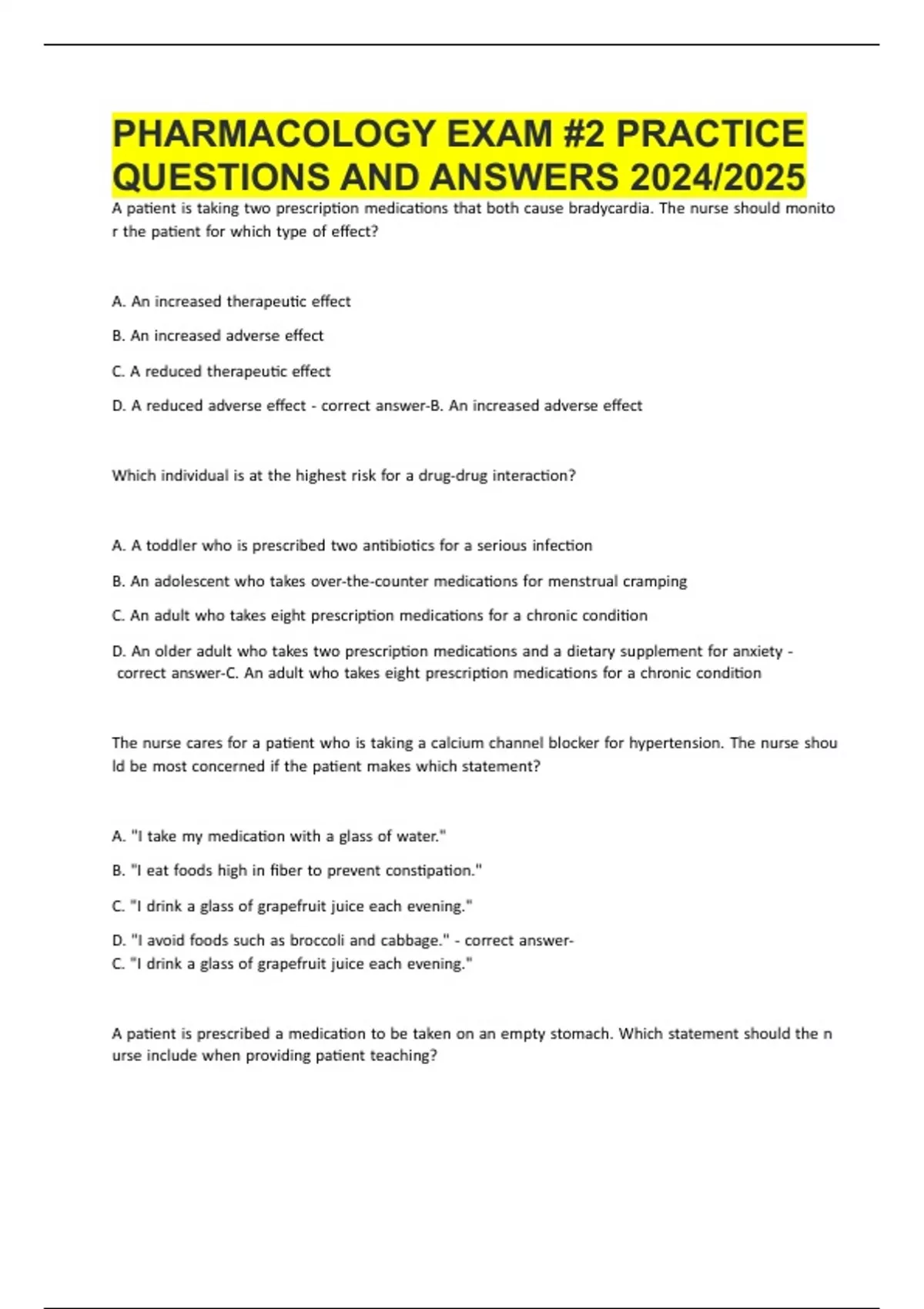 PHARMACOLOGY EXAM #2 PRACTICE
